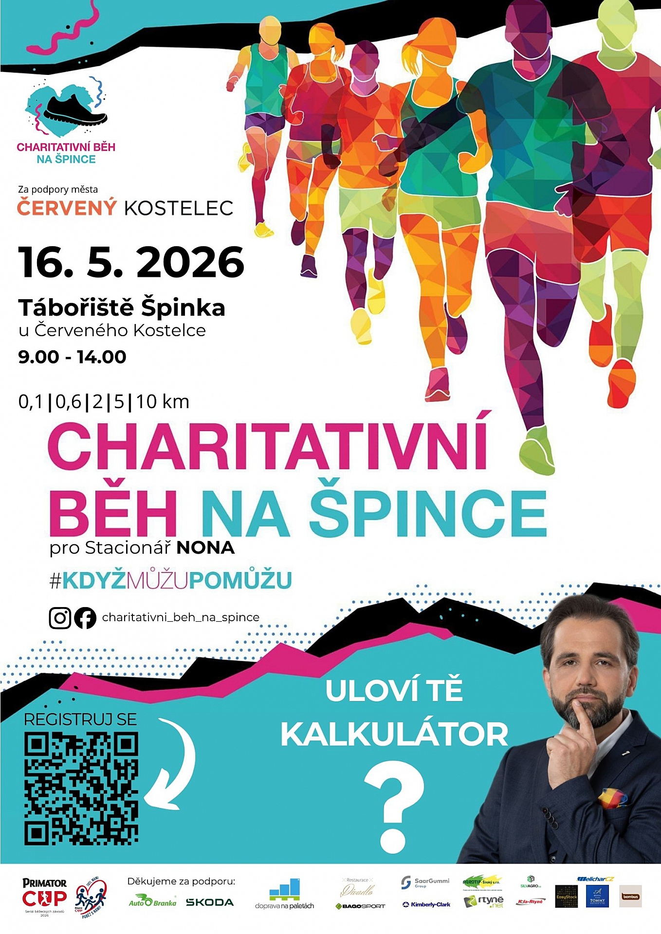 Zveme vás na 9. ročník Charitativního běhu na Špince. Těšíme se na vás v sobotu 16. května v Tábořišti Špinka u Červeného Kostelce. Společně poběžíme pro Denní stacionář NONA.Jako každý rok máme pro běžce a běžkyni na 10 km koloběžku Kostka. Stejně jako vloni je