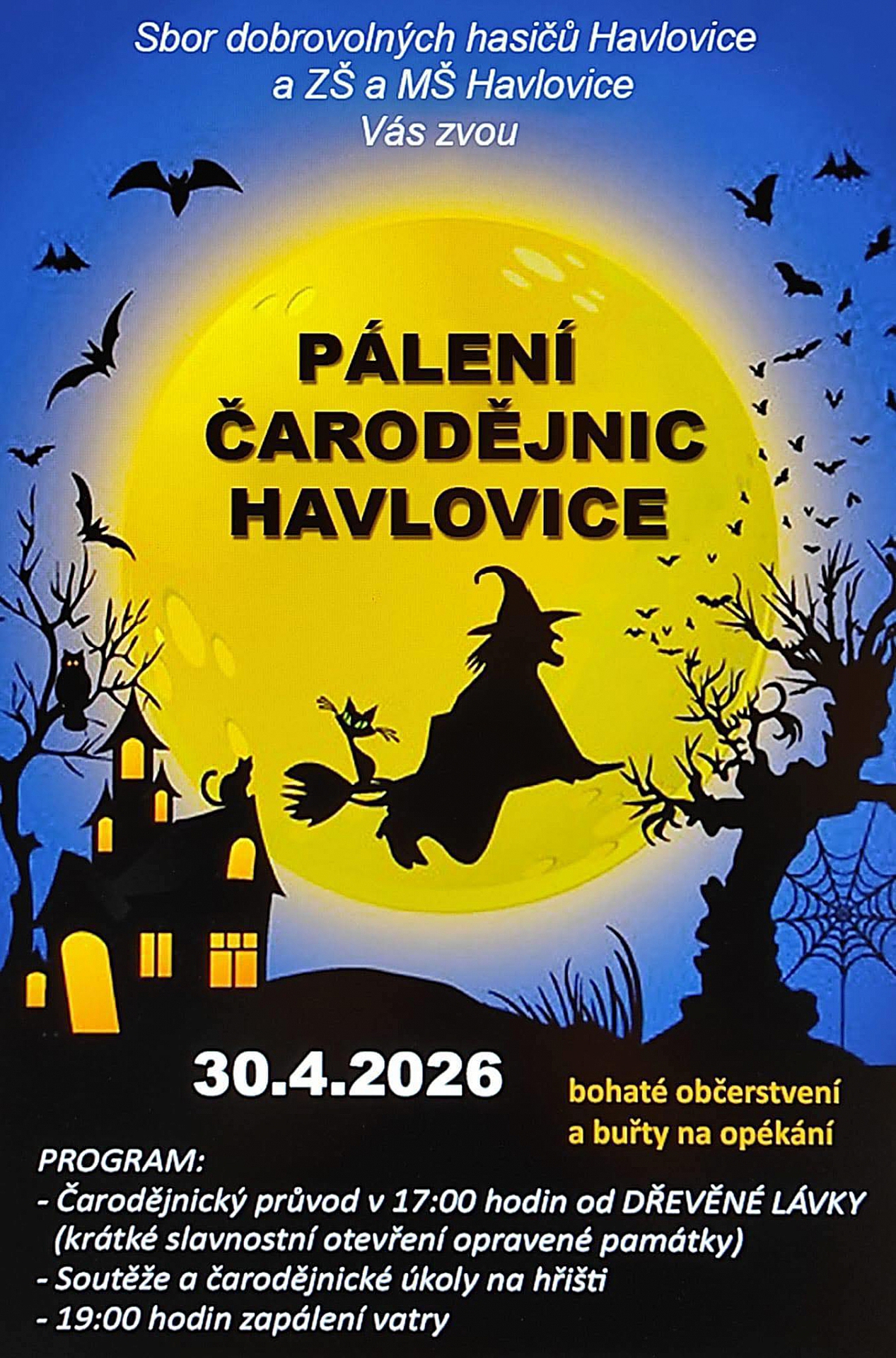 Návštěvníci se mohou těšit na příjemné odpoledne plné zábavy a čarodějnické atmosféry.