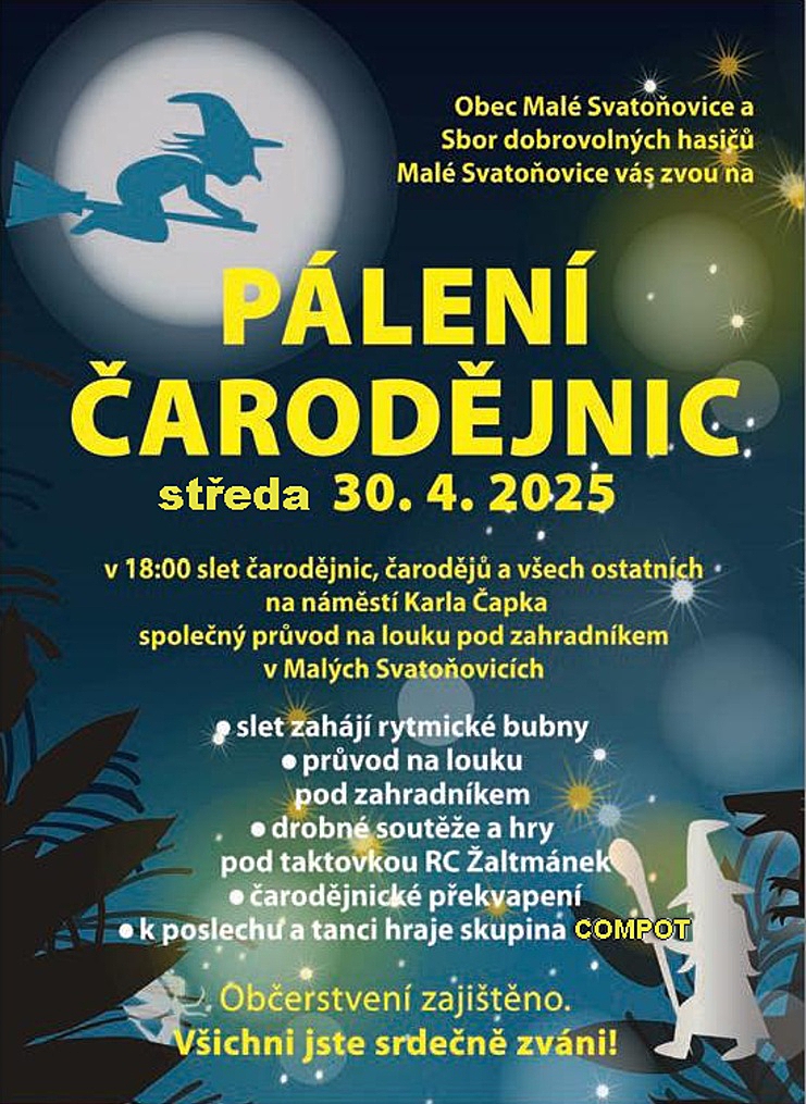 Obec Malé Svatoňovice a SDH Malé Svatoňovice vás zvou na pálení Čarodějnic