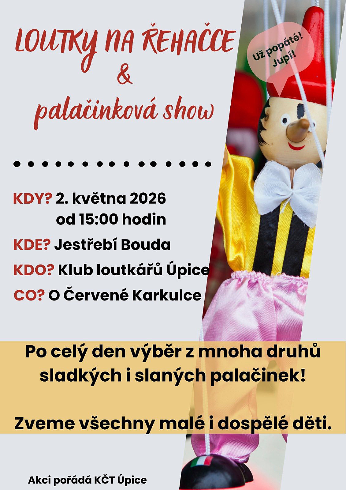 Už tuto sobotu se na vás na Jestřebí boudě opět těší Klub loutkářů Úpice, tentokrát s pohádkou O Červené Karkulce