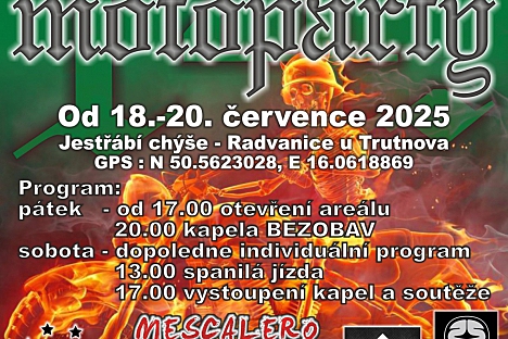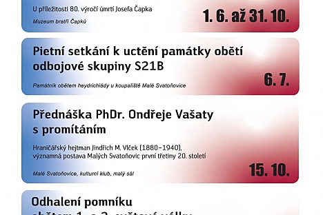 Zájezd na muzikál Taťkové Jestřebí hory, Radvanice Út 29.07.2025 Letní perníčkové středy na Dřevěnce v Úpici! Jestřebí hory, Úpice Út 29.07.2025 Kniha na cestách – ještě tento týden! Batňovice, Jestřebí hory Po 25.08.2025 Slavnostní otevření multifunkční budovy v Havlovicích Havlovice, Jestřebí hory St 03.09.2025 Adventní koncerty 2025 Jestřebí hory, Rtyně v Podkrkonoší Po 15.09.2025 Moštárna ve Rtyni zahájuje provoz Rtyně v Podkrkonoší So 20.09.2025 Dětské skupiny v Malých Svatoňovicích Jestřebí hory, Malé Svatoňovice Pá 14.03.2025 Příměstský tábor Jestřebí hory, Úpice Po 10.02.2025 Rtyňské foto: Opuštěné a zapomenuté Jestřebí hory, Rtyně v Podkrkonoší St 22.10.2025 Podzimní taneční kurzy pro středoškoláky v Úpici Úpice Po 06.01.2025 - Pá 05.09.2025 RTYŇSKÉ FOTO 2025: Tradiční fotosoutěž na téma "Opuštěné a zapomenuté" Rtyně v Podkrkonoší Út 14.01.2025 - St 24.09.2025 Putující biograf v Jestřebích horách Jestřebí hory So 31.05.2025 - Pá 29.08.2025 80. výročí konce 2. světové války Malé Svatoňovice Ne 01.06.2025 - Út 28.10.2025 Léto s vůní perníku Úpice Pá 06.06.2025 - Pá 05.09.2025 PUTOVÁNÍ PO RTYNI: DOBRODRUŽSTVÍ V PODKRKONOŠÍ Jestřebí hory, Rtyně v Podkrkonoší Út 01.07.2025 - Ne 31.08.2025 FEŠÁCI & MICHAELA TUČNÁ V ÚPICI! Úpice Út 01.07.2025 - Čt 09.10.2025 Vzpomínka na hrdiny odbojové skupiny S 21 B Jestřebí hory Ne 06.07.2025 - Ne 06.07.2025 Rtyně FEST Jestřebí hory, Rtyně v Podkrkonoší Ne 06.07.2025 - Ne 06.07.2025 Kvíz pod širým nebem - Znáte český film? Maršov u Úpice Pá 11.07.2025 - Pá 11.07.2025 BENÁTSKÁ NOC NA LOUCE U MANDLE Havlovice So 12.07.2025 - So 12.07.2025 Amfik u Studánky - hudební posezení Malé Svatoňovice So 12.07.2025 - So 12.07.2025 Kvalifikace na Mistrovství ČR v kombinovaných soutěžích chladnokrevných koní Radvanice So 12.07.2025 - So 12.07.2025 Divadlo na Vartě Batňovice, Jestřebí hory Čt 17.07.2025 - Čt 17.07.2025 DISCO RETRO Jestřebí hory, Rtyně v Podkrkonoší Pá 18.07.2025 - Pá 18.07.2025 Radvanická Motopárty má co nabídnout Jestřebí hory, Radvanice Pá 18.07.2025 - Ne 20.07.2025 Ewa Farna ve Rtyni Jestřebí hory, Rtyně v Podkrkonoší So 19.07.2025 - So 19.07.2025 LETNÍ KINO NA RYCHTĚ Rtyně v Podkrkonoší So 26.07.2025 - So 26.07.2025 Amfik u Studánky - divadelní představení Jestřebí hory So 26.07.2025 - So 26.07.2025 Amfik u Studánky - divadelní představení Jestřebí hory, Malé Svatoňovice So 26.07.2025 - So 26.07.2025 Tajemství letních koktejlů Jestřebí hory, Maršov u Úpice So 26.07.2025 - So 26.07.2025 15. ročník Párkyády Jestřebí hory, Radvanice So 26.07.2025 - So 26.07.2025 NOTA Jestřebí hory, Rtyně v Podkrkonoší So 02.08.2025 - So 02.08.2025 CHOVATELSKÝ DEN SE SVODEM ZVÍŘAT Jestřebí hory, Radvanice So 09.08.2025 - So 09.08.2025 Letní běh na běžkách Havlovice, Jestřebí hory Ne 10.08.2025 - Ne 10.08.2025 Letní kino na Rychtě Rtyně v Podkrkonoší So 16.08.2025 - So 16.08.2025 Bartolomějská pouť 2025 je tady! Batňovice Pá 22.08.2025 - Ne 24.08.2025 LÉTO NEKONČÍ! Malé Svatoňovice So 23.08.2025 - So 23.08.2025 Tajuplný svět podivuhodných her Jiřího Šebesty Batňovice So 23.08.2025 - So 23.08.2025 Historická výstava vozidel na Klondyku Batňovice, Jestřebí hory Ne 24.08.2025 - Ne 24.08.2025 FRÍDA ORATOR živě v Úpici! Úpice St 27.08.2025 - St 27.08.2025 MARKOUŠOVICKÉ RUBÁNÍ 2025 Jestřebí hory, Velké Svatoňovice So 30.08.2025 - So 30.08.2025 Amfík u Studánky – hudební posezení Jestřebí hory, Malé Svatoňovice So 30.08.2025 - So 30.08.2025 Olympiáda pro starší a dříve narozené Jestřebí hory, Podkrkonoší Čt 04.09.2025 - Čt 04.09.2025 POSVÍCENSKÁ ZÁBAVA VE RTYNI Jestřebí hory, Rtyně v Podkrkonoší Pá 05.09.2025 - Pá 05.09.2025 Venkovní divadlo v Maršově Jestřebí hory, Maršov u Úpice Pá 05.09.2025 - Pá 05.09.2025 Venkovní divadlo v Maršově Jestřebí hory, Maršov u Úpice Pá 05.09.2025 - Pá 05.09.2025 Country večer v Batňovicích Batňovice, Jestřebí hory So 06.09.2025 - So 06.09.2025 43. ročník Memoriálu Miroslava Sojky a Jana Andrleho Jestřebí hory, Malé Svatoňovice So 06.09.2025 - So 06.09.2025 Den obce Radvanice - Hvězdy pod hvězdami Jestřebí hory, Radvanice So 06.09.2025 - So 06.09.2025 Batňovické kotlíky 2025 Batňovice, Jestřebí hory So 06.09.2025 - So 06.09.2025 250 let od selských bouří ve Rtyni v Podkrkonoší Jestřebí hory, Rtyně v Podkrkonoší Ne 07.09.2025 - Ne 07.09.2025 Klub loutkářů zve na Loutkovou zahradu! Jestřebí hory, Úpice Ne 07.09.2025 - Ne 07.09.2025 Koncert duchovní hudby – Collaudemus v Markoušovicích Jestřebí hory, Velké Svatoňovice Ne 07.09.2025 - Ne 07.09.2025 ZO ČSCH Úpice pořádá tradiční výstavu! Jestřebí hory So 13.09.2025 - So 13.09.2025 Zavírání silnic - Benefiční slavnost na Náměstí Horníků Jestřebí hory, Rtyně v Podkrkonoší So 13.09.2025 - So 13.09.2025 Pohádkový les Havlovice, Jestřebí hory So 13.09.2025 - So 13.09.2025 100 LET HUSOVA SBORU V ÚPICI Jestřebí hory, Úpice Ne 14.09.2025 - Ne 14.09.2025 ORLICKO-KLADSKÝ VARHANNÍ FESTIVAL 2025 Jestřebí hory, Rtyně v Podkrkonoší Pá 19.09.2025 - Pá 19.09.2025 Divadelní soubor Libňatov uvádí pohádkovou komedii Rytířova dcera Jestřebí hory, Libňatov Pá 19.09.2025 - Pá 19.09.2025 Společný výšlap na Žaltman – oslava 5 let rozhledny! Jestřebí hory, Malé Svatoňovice So 20.09.2025 - So 20.09.2025 ŽABÁRENSKÁ SLAVNOST VE RTYNI! Jestřebí hory, Rtyně v Podkrkonoší So 20.09.2025 - So 20.09.2025 Svatováclavské spřežení Batňovice, Jestřebí hory So 20.09.2025 - So 20.09.2025 Noc vědců v Radvanicích již tento pátek! Jestřebí hory, Radvanice Pá 26.09.2025 - Pá 26.09.2025 Strašidelný les v Batňovicích: 2 úrovně strachu - odvaha nutná! Batňovice