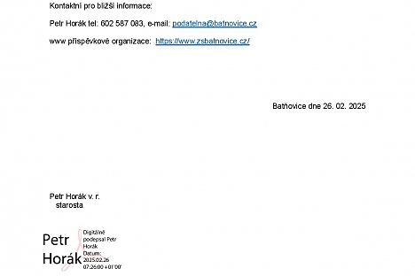 Bližší informace u starosty obce na tel: 602 587 083, nebo obec@batnovice.cz.