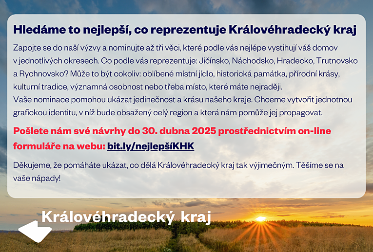 Obyvatelé mohou nominovat až tři věci, které podle nich nejlépe reprezentují jednotlivé okresy – Jičínsko, Náchodsko, Hradecko, Trutnovsko a Rychnovsko.