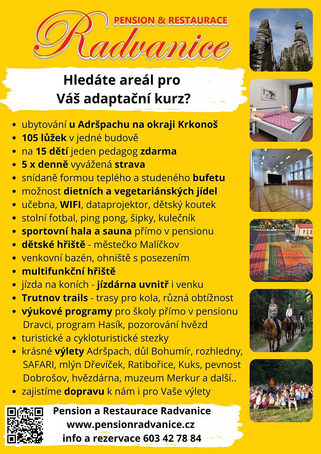 Pension & Restaurace Radvanice nabízí pestrou nabídku služeb. Mnohé z nich jsou zaměřené na školy a školky.