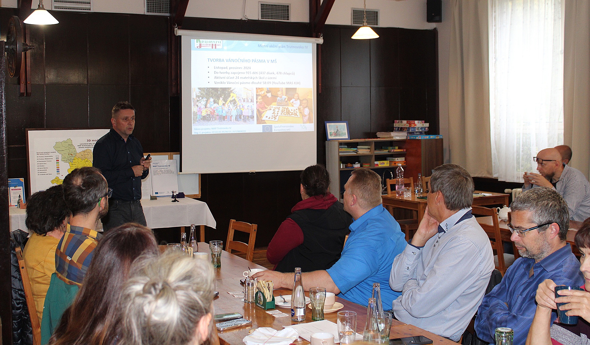 Nositelem projektu MAP Trutnovsko IV je Místní akční skupina (MAS) Království – Jestřebí hory, která konferenci zorganizovala. Radvanice jsou ideálním místem pro konání této akce, MAS s vedením obce dlouhodobě spolupracuje. „Platí to konkrétně také o radvanické škole a rovněž o Pensionu a Restauraci Radvanice, kde máme vždy perfektní zázemí,“ nešetřil chválou ředitel pořádající MAS Jan Balcar. Konference vrcholila na ZŠ Radvanice, kde poutavý program připravil tým pedagogů pod vedením ředitele školy Roberta Hagera. Do nápaditého kulturního pásma se kromě školáků a pana ředitele zapojila i jeho zástupkyně Iljana Jirmanová. Představen tu byl kalendář s fotografiemi radvanických žáků. Účastníci konference si taktéž mohli vyzkoušet stanoviště, která byla součástí nedávné „Noci vědců“, jež radvanická škola v rámci této významné celoevropské akce hostila. Velkým zpestřením byl pěší výlet delegátů konference ke štole, kde radvanický starosta Tomáš Němec zájemce zasvětil do tajů dolování uhlí.