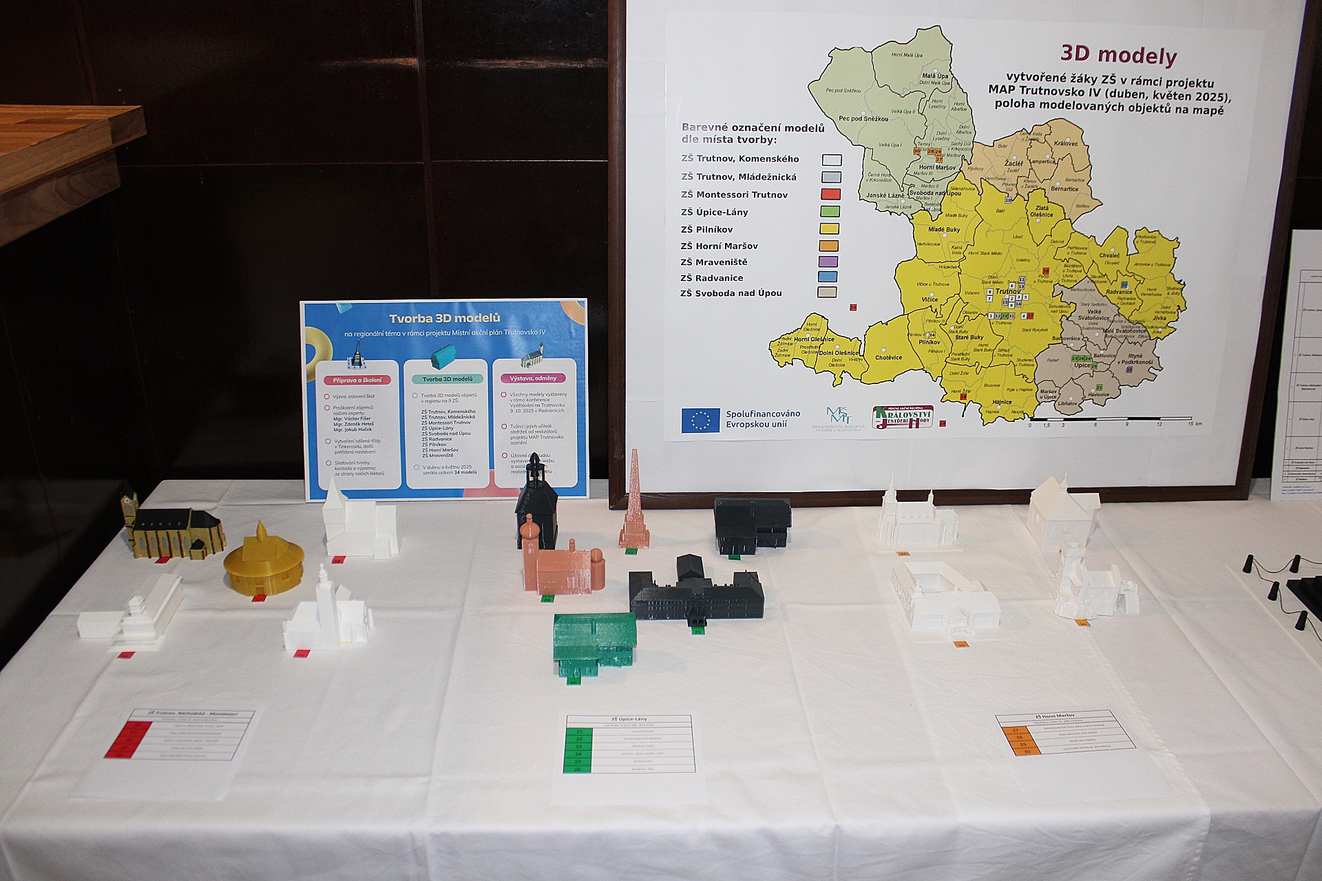 Jedním ze zlatých hřebů radvanického setkání byla výstava 3D modelů na regionální téma. K vidění bylo 34 exponátů, které předtím v rámci projektu MAP vytvořili žáci devíti základních škol z Trutnovska. Modelovali například trutnovský památník Gablenz, rozhlednu Eliška u Žacléře, úpickou Dřevěnku, havlovickou zvoničku anebo například zámek v Horním Maršově.