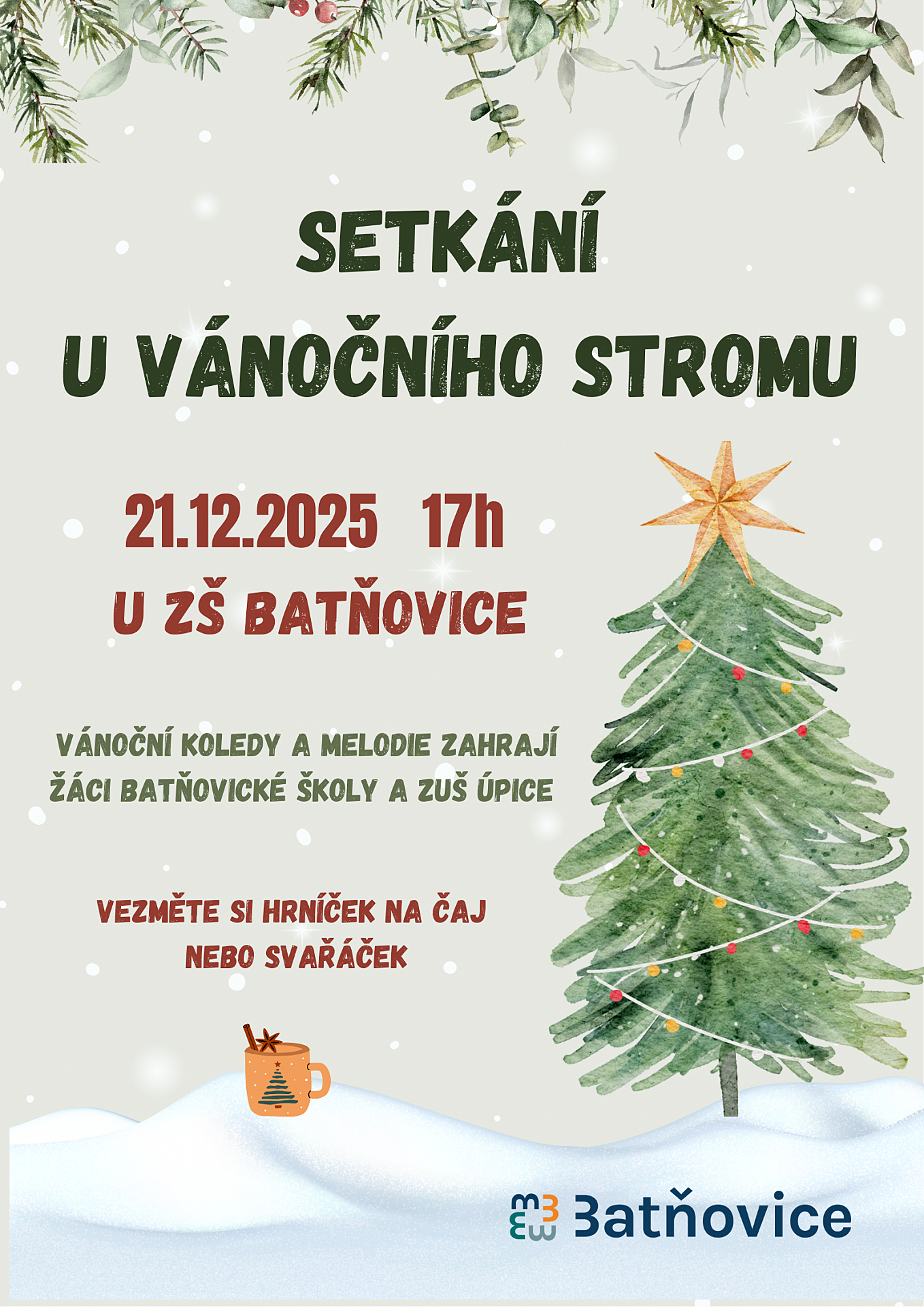 Srdečně zveme všechny občany a návštěvníky na tradiční adventní setkání u vánočního stromu v Batňovicích.