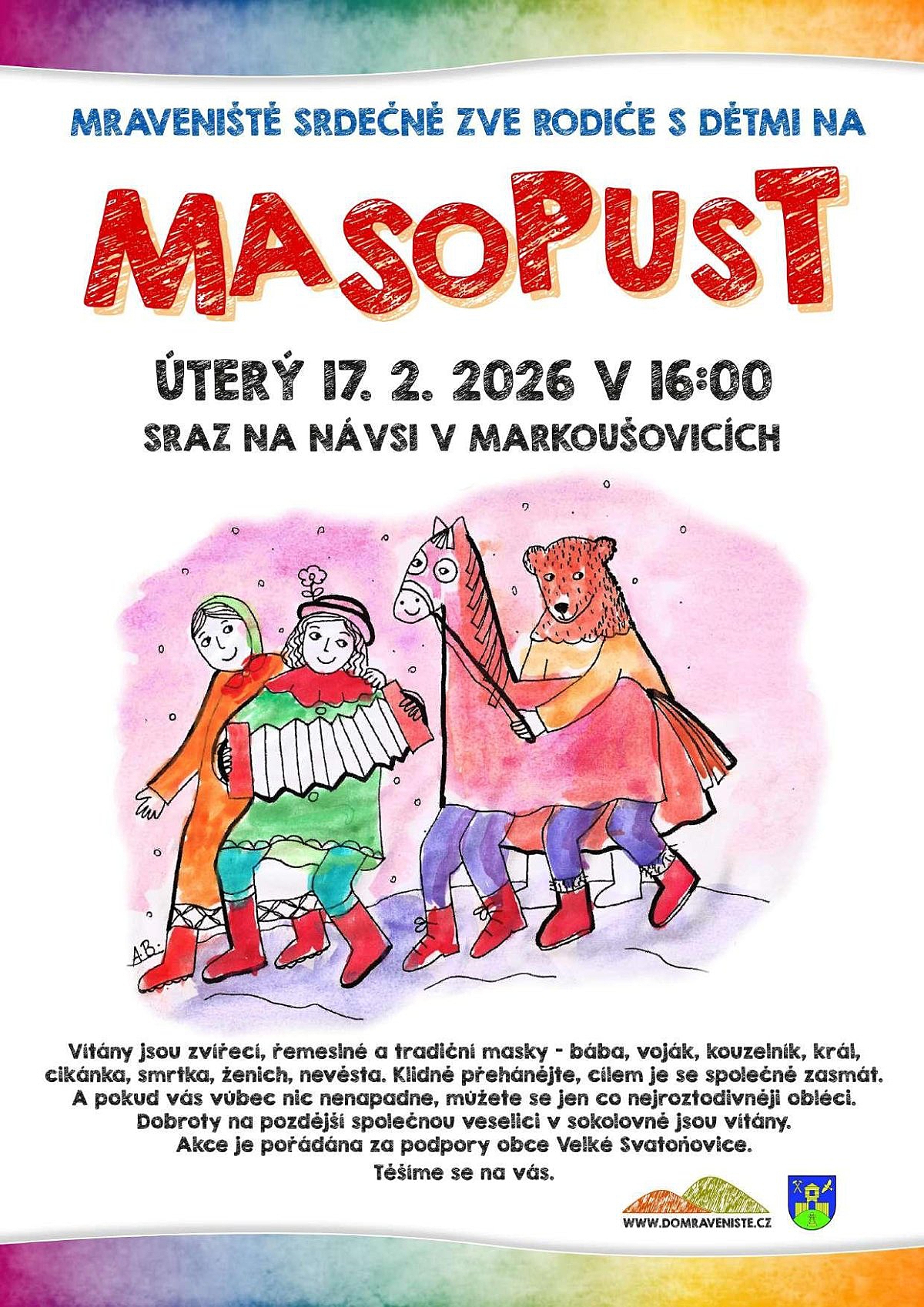 Mraveniště Markoušovice zve všechny obyvatele obce na tradiční masopustní průvod.