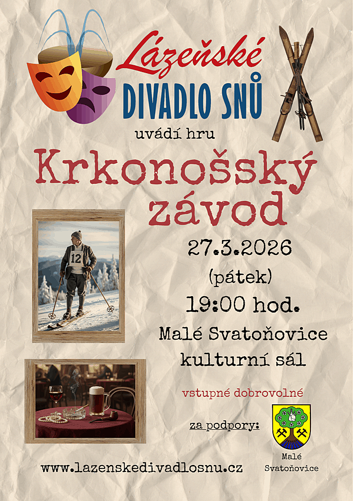 V pátek 27. března 2026 od 19:00 hod. ve velkém sále Kulturního klubu v Malých Svatoňovicích.
