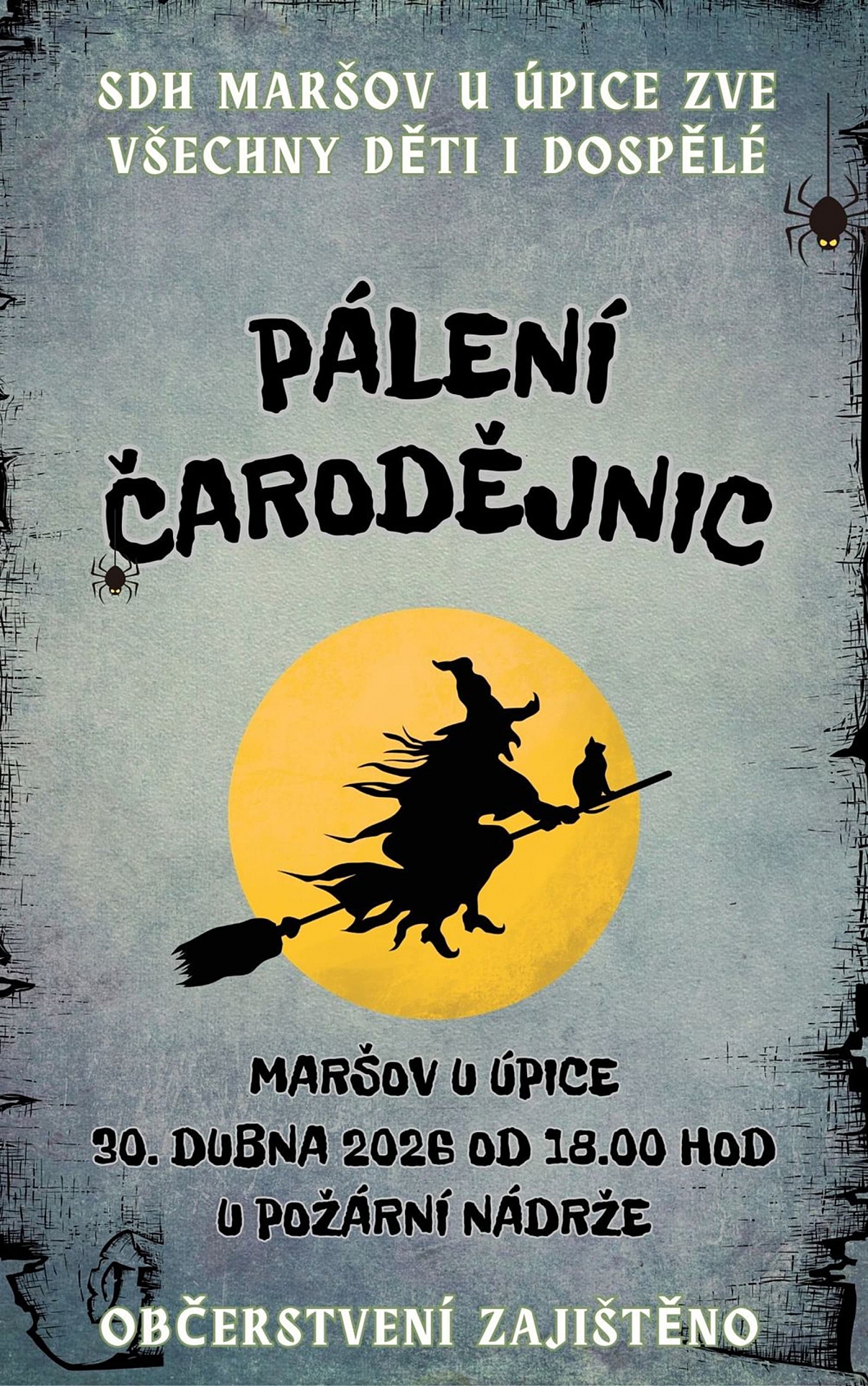 Sbor dobrovolných hasičů srdečně zve malé i velké na tradiční pálení čarodějnic. Ve čtvrtek 30. 4. 2026 od 18:00