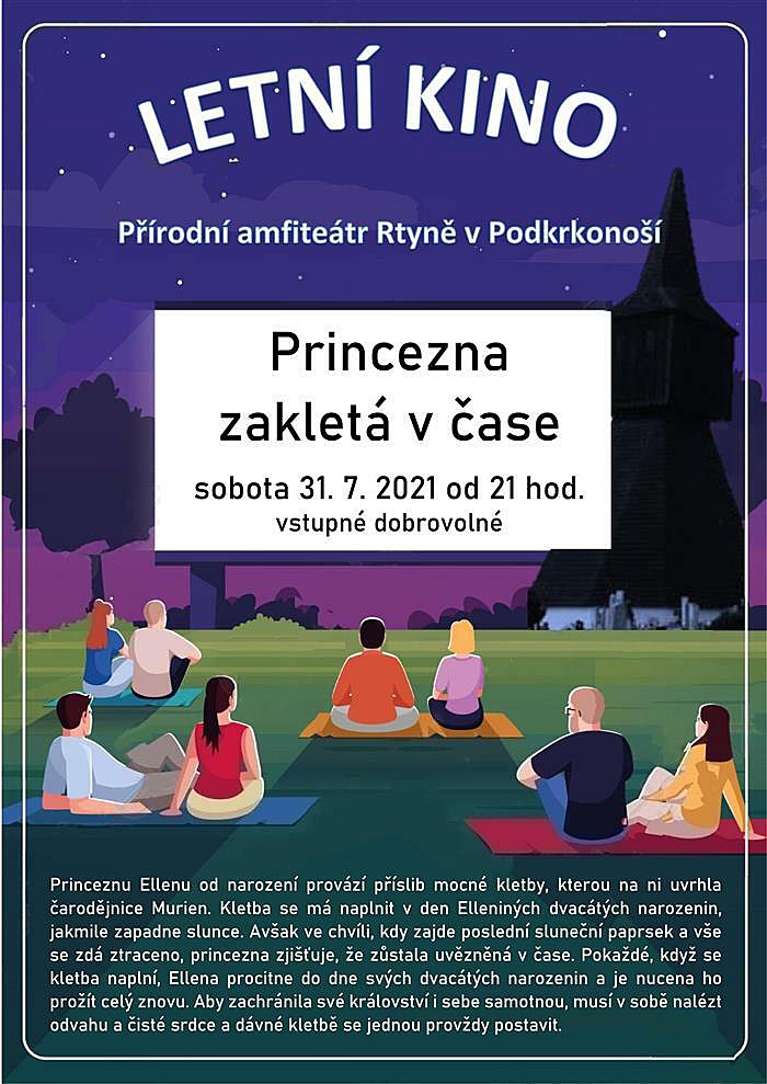 V sobotu 31.července 2021 se můžete těšit na promítání pohádky Princezna zakletá v čase v přírodním amfiteátru ve Rtyni v Podkrkonoší.