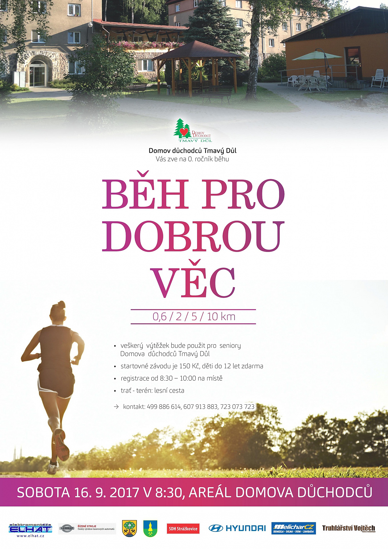 Domov důchodců Tmavý důl zve na 0. ročník Běhu pro dobrou věc, který se uskuteční v sobotu 16. 9. od 8:30 v areálu domova. Výtěžek ze závodu bude použit pro potřeby seniorů z Domova důchodců Tmavý důl.
