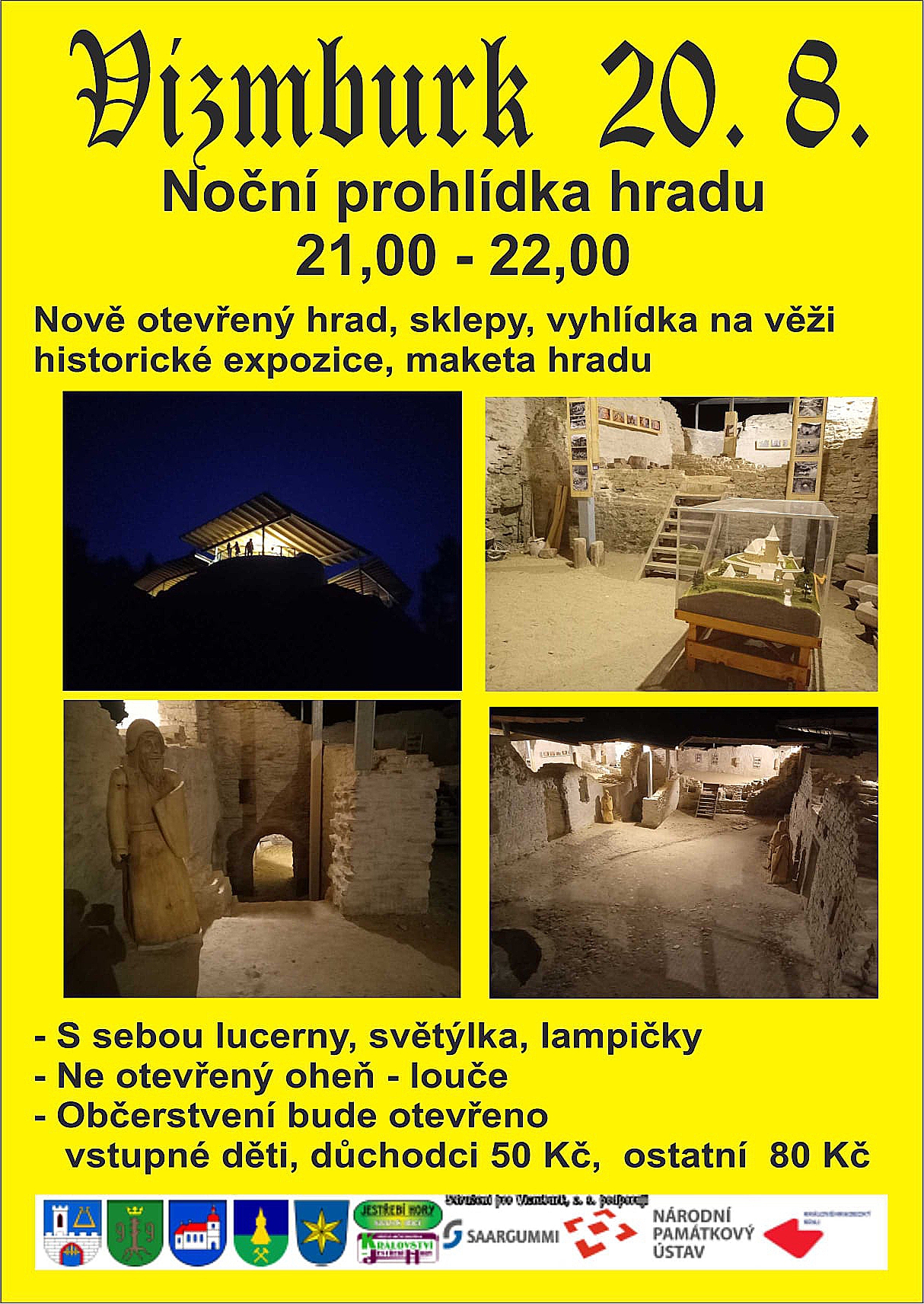 Další noční prohlídka hradu Vízmburk se uskuteční v pátek 20. srpna 2021. Spoustu zajímavého tady uvidíme a uslyšíme mezi 21. a 22. hodinou. S sebou lucerny, světýlka, lampičky.