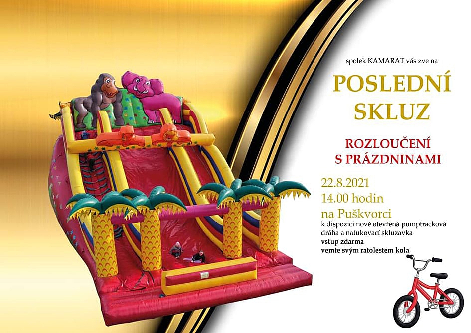 Spolek KAMARAT Vás zve na rozloučení s prázdninami, které se bude konat 22. srpna od 14ti hodin na Puškvorci. Těšit se můžete na novou pumptrackovou dráhu a nafukovací skluzavku.