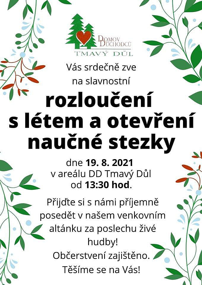 Domov důchodců Tmavý důl Vás srdečně zve na slavnostní rozloučení s létem a otevření naučné stezky dne 18. srpna 2021 od 13:30.
