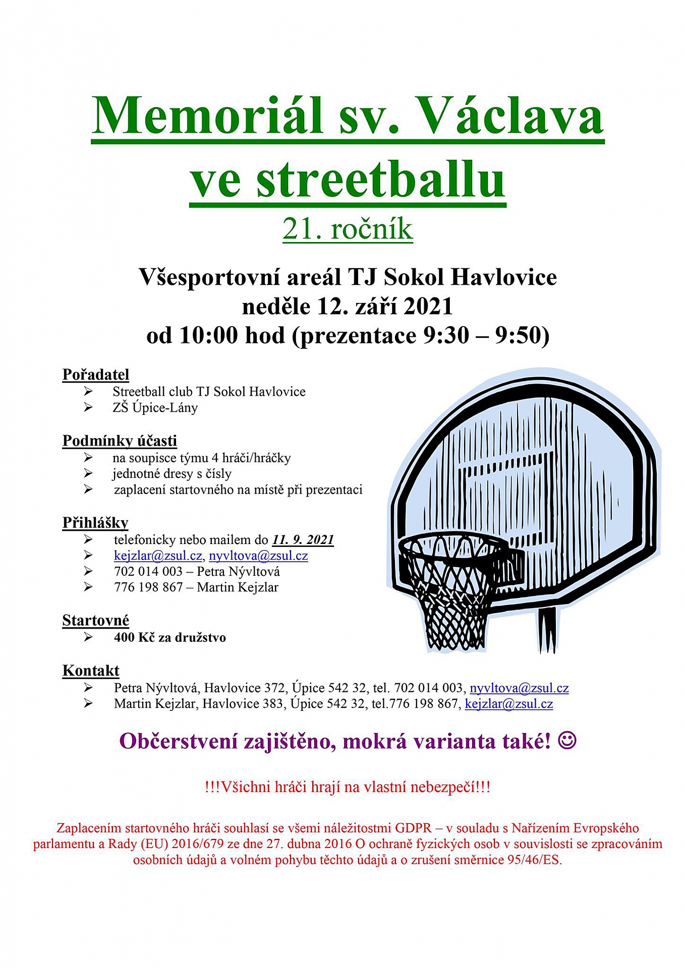 Všichni příznivci streetballu se určitě už těší na Memoriál sv. Václava, který se bude konat tento rok 12. září od 10hodin ve Všesportovním areálu v Havlovicích.