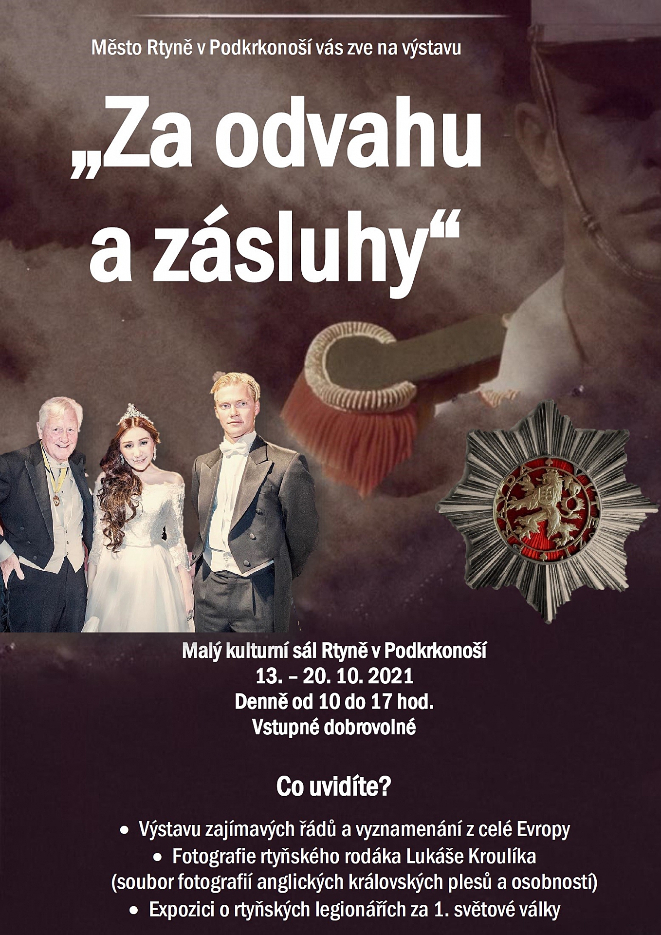 Malý kulturní sál ve Rtyni v Podkrkonoší na týden ožije díky výstavě s názvem Za odvahu a zásluhy. Můžete se těšit na výstavu zajímavých řádů a vyznamenání z celé Evropy a mnoho dalšího.