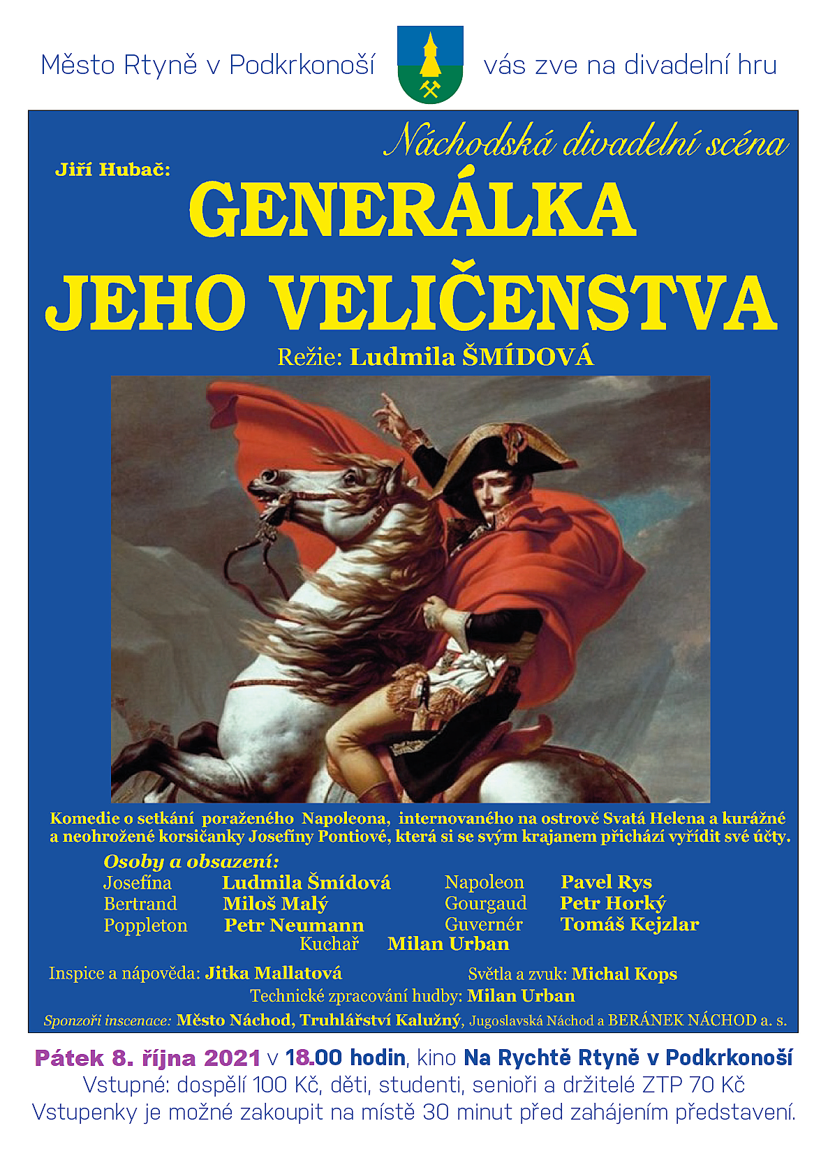 Již nyní se můžete těšit na komedii o Napoleonovi. A kdy že se toto představení bude konat? V pátek 8. října 2021 v kině Na Rychtě ve Rtyni v Podkrkonoší.