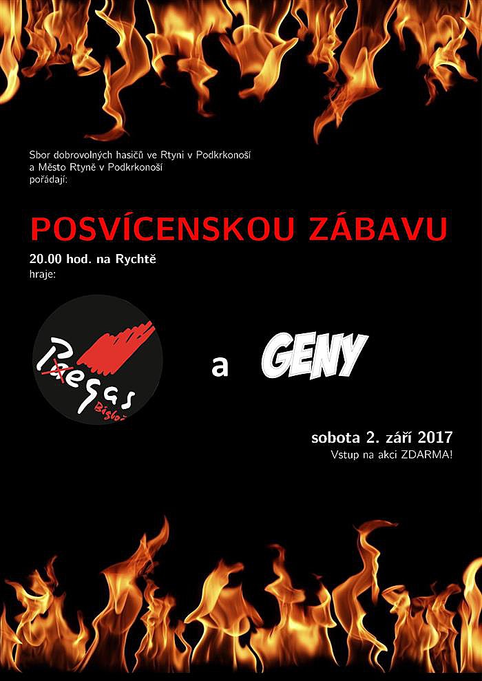 Sbor dobrovolných hasičů Rtyně v Podkrkonoší a město Rtyně v Podkrkonoší srdečně zvou na Posvícenskou zábavu, která se koná 2. září od 20 hodin v areálu na Rychtě. Vstup zdarma.