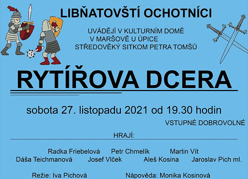 V sobotu 27. listopadu se do Maršova chystají libňatovští ochotníci se svým představením s názvem Rytířova dcera.