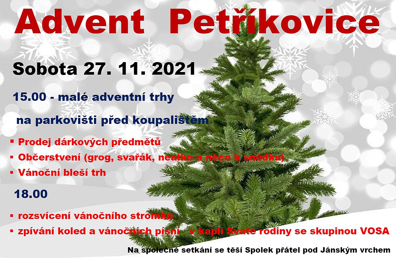 V sobotu 27. listopadu se můžete těšit na adventní trhy ve Chvalči (Petříkovicích). A pomyslnou třešničkou na dortu bude rozsvícení vánočního stromu.