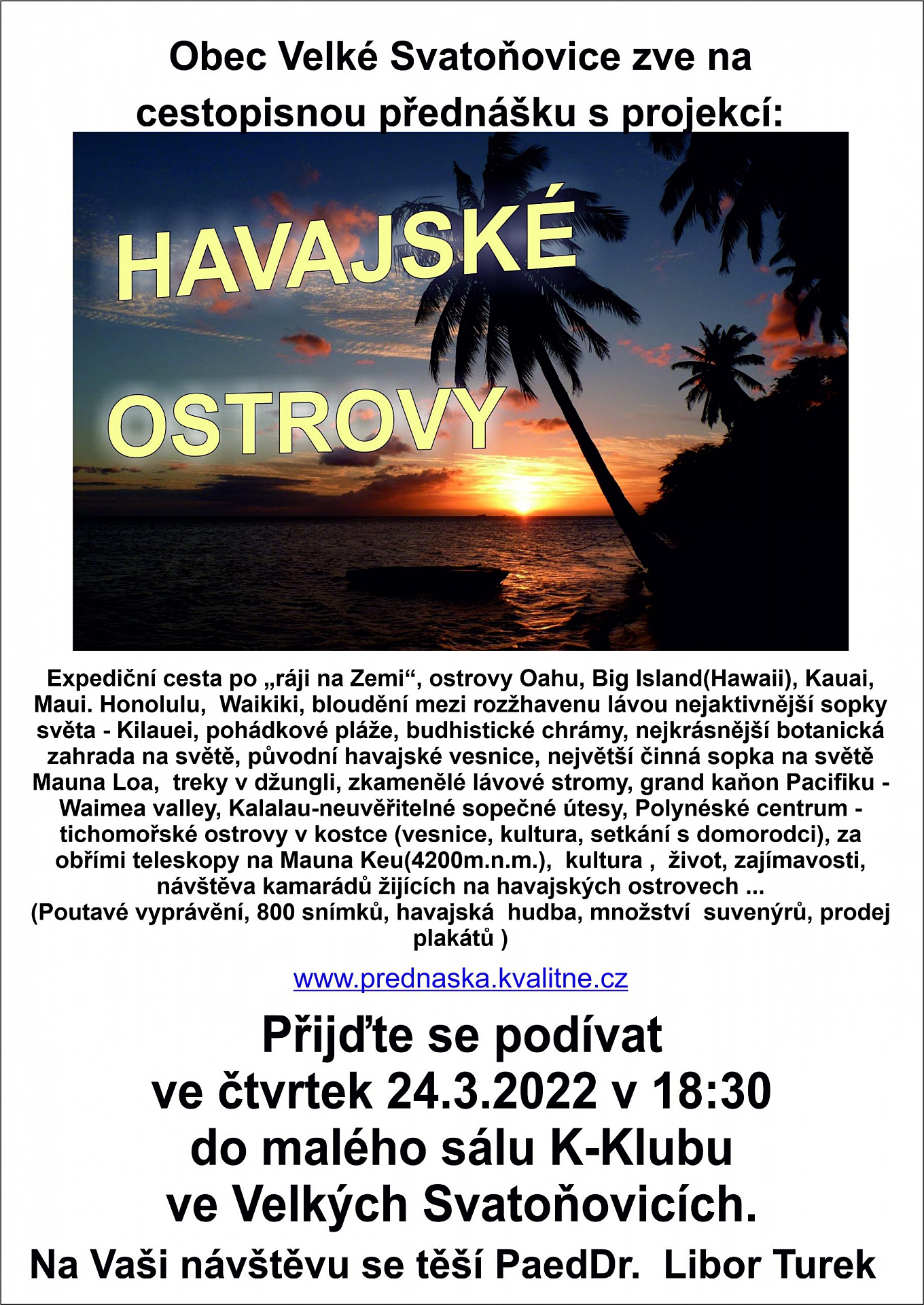 Obec Velké Svatoňovice zve na zajímavý večer