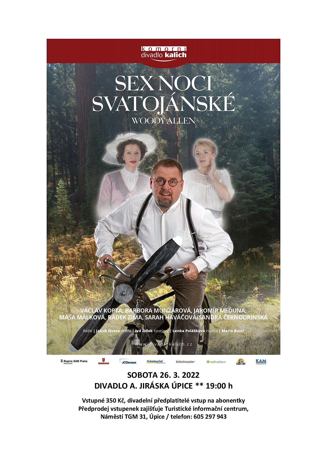 Skvělá komedie Woody Allena vznikla podle stejnojmenného filmu. Jedná se o zábavnou a přitom rafinovanou hru o lásce a sexu, nejrůznějších vášních, předsudcích, a v neposlední řadě také o manželských trampotách. Jednoho letního dne se do vily ukryté v idylických lesích sjede nesourodá společnost: poněkud potřeštěný vynálezce Andrew řešící svou sexuální frustraci vymýšlením prapodivných vynálezů a jeho půvabná manželka Adriana zde přivítají geniálního, ale zdánlivě úzkoprsého filozofa Leopolda a jeho nastávající manželku, ve všech směrech okouzlující Ariel. Již tak dosti třaskavou směs doplní ještě záletný a bezuzdně milující lékař Maxwell a jeho skutečně v ničem nekomplikovaná přítelkyně Dulcy. Brzy je jasné, že název hry, odkazující kromě jiného k nejhranější Shakespearově komedii, není zvolen náhodou …