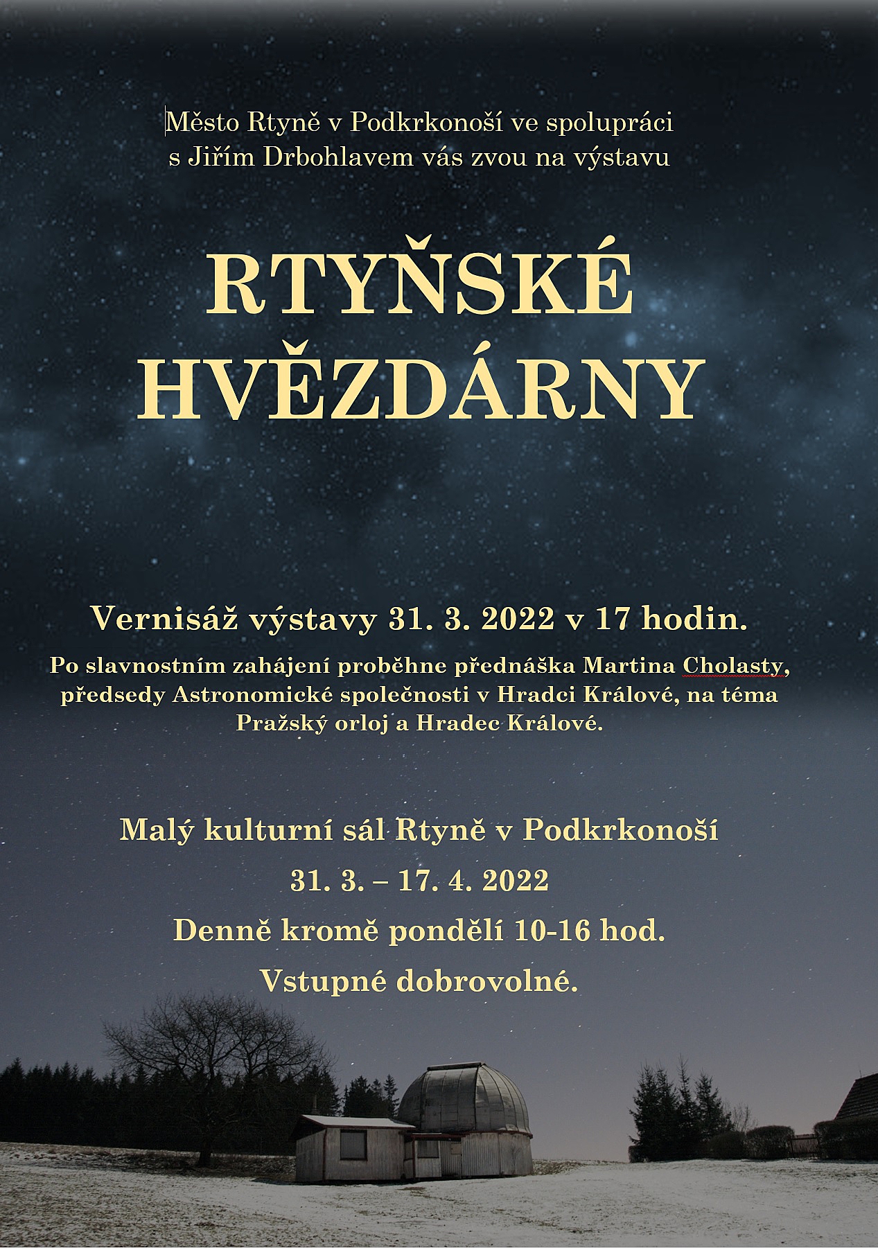 Po slavnostním zahájení výstavy proběhne přednáška Martina Cholasty odborného pracovníka HVĚZDÁRNY A PLANETÁRIA v Hradci Králové.