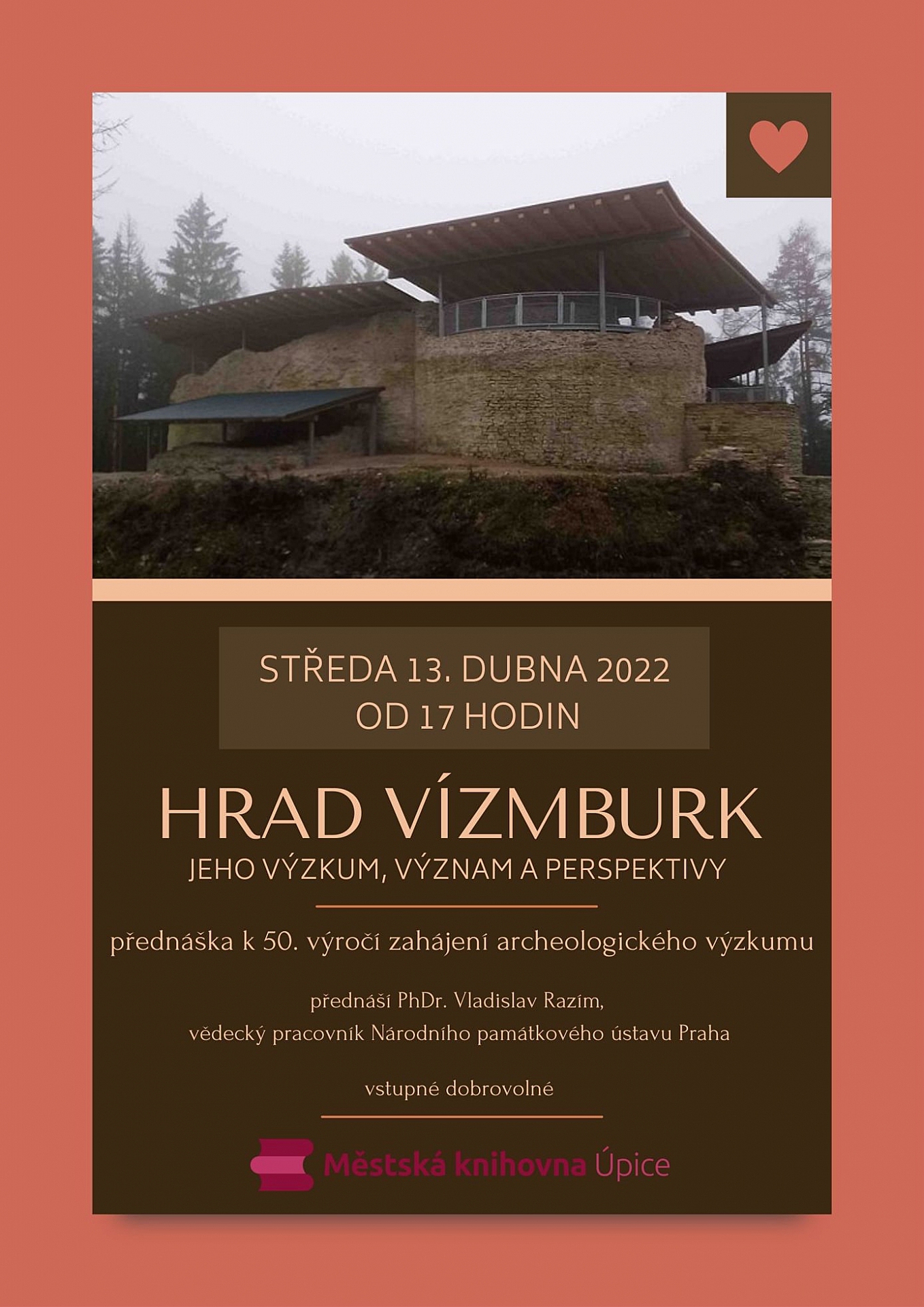 Přednáška pana Vladislava Razíma k 50. výročí zahájení archeologického výzkumu hradu Vízmburk se koná v městské knihovně v Úpici.