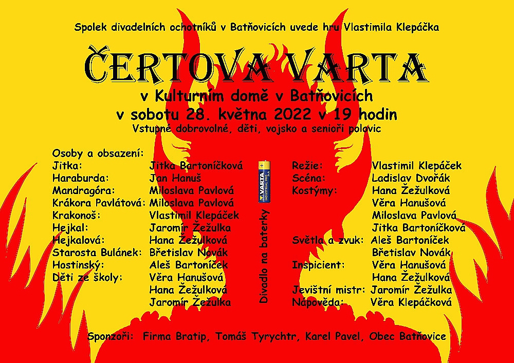 Spolek divadelních ochotníků v Batňovicích uvede hru ČERTOVA VARTA
