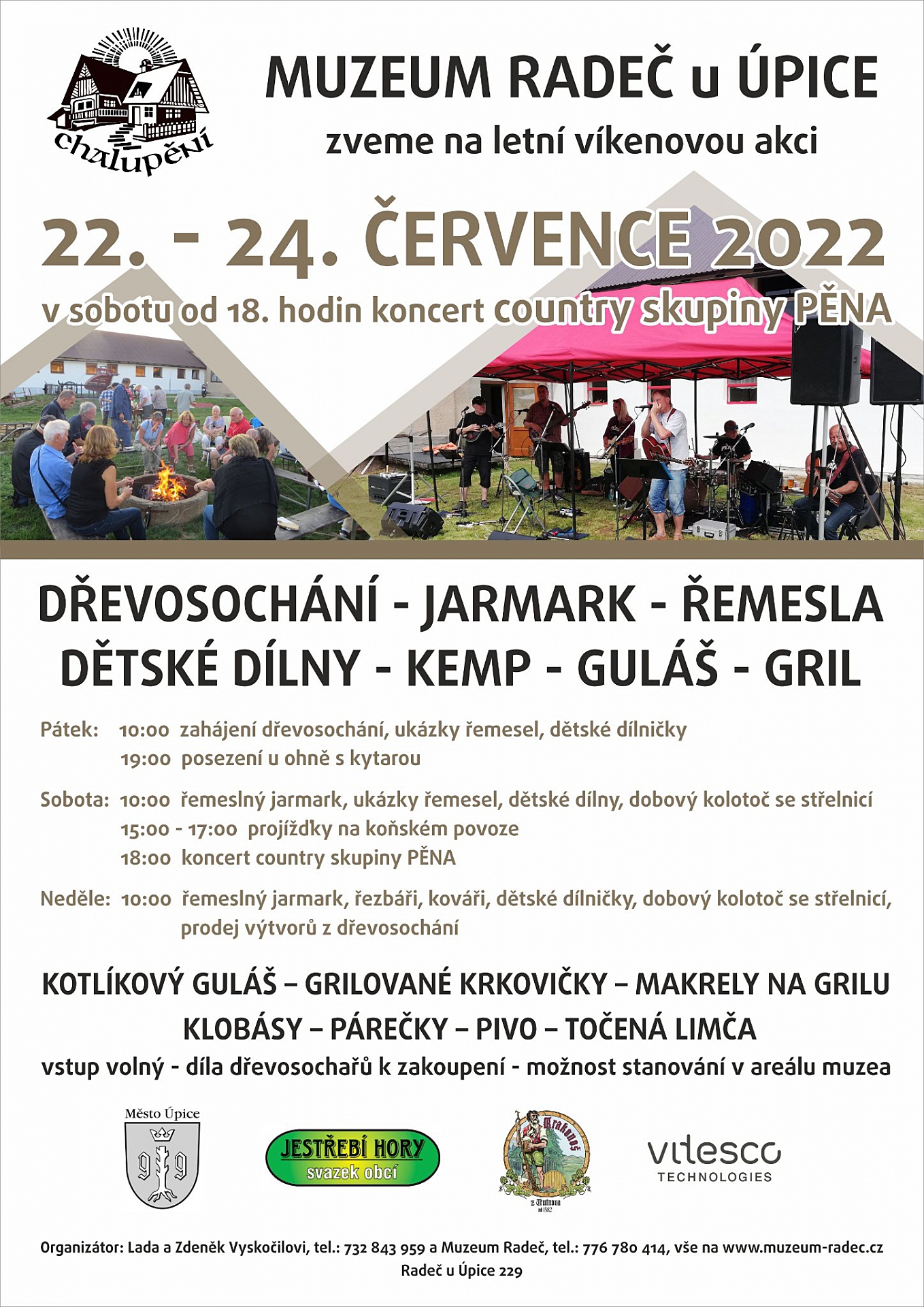 Organizátoři: Lada a Zdeněk Vyskočilovi tel: 732 439 59 a Muzeum Chalupění Bc. Pavel Melichar tel: 776 780 414.
