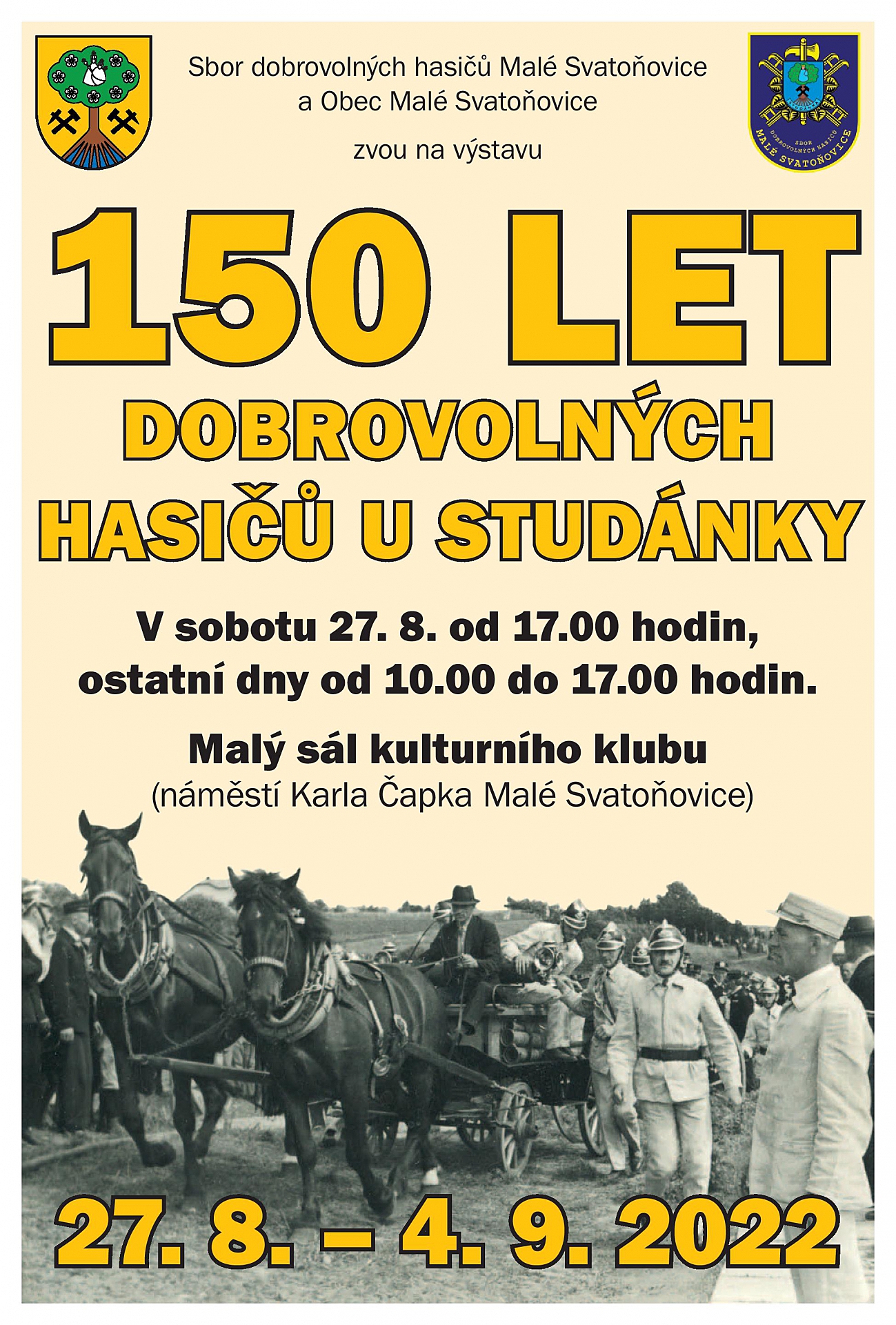 Sbor dobrovolných hasičů Malé Svatoňovice a obec Malé Svatoňovice zvou na výstavu 150 let dobrovolných hasičů u Studánky