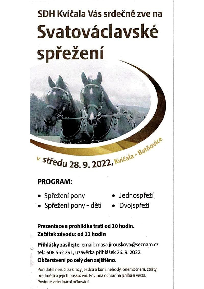 SDH Kvíčala Vás srdečně zve na Svatováclavské spřežení