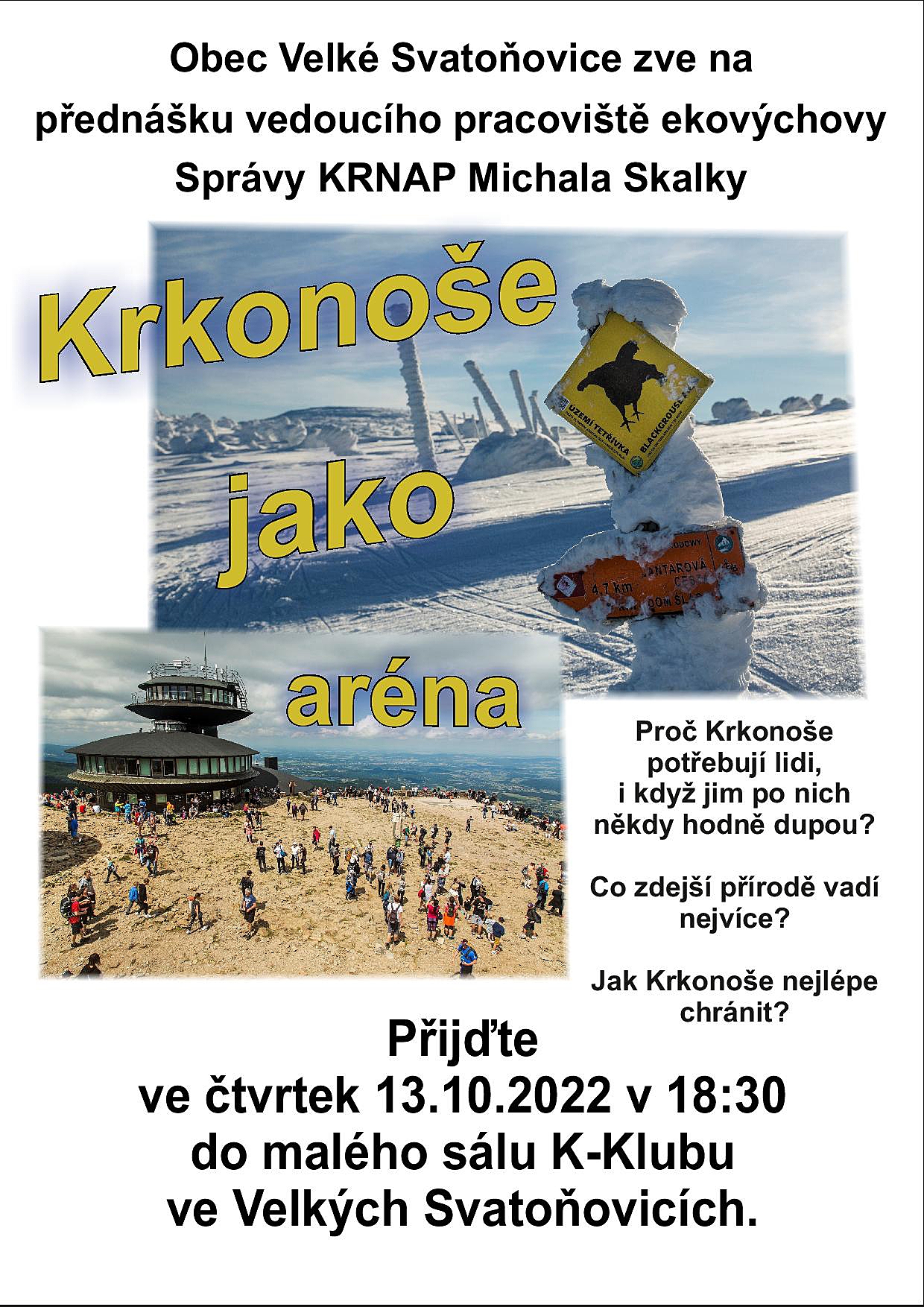 Zveme vás 13. 10. 2022 od 18:30 hod. na přednášku ekolektora Správy KRNAPu Michala Skalky do malého sálu K-Klubu ve Velkých Svatoňovicích.