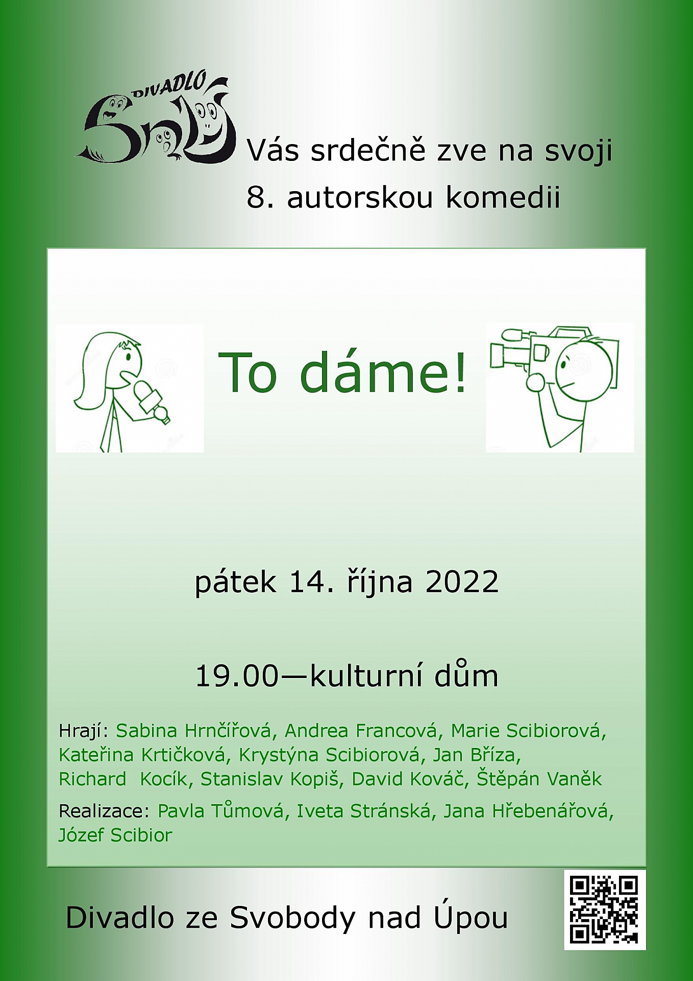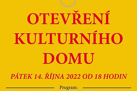 14. 10. 2022 proběhne slavnostní otevření kulturního domu. Jeho součástí bude krátký slavnostní úvod, povídání o přestavbě interiérů budovy, promítání fotografií a především divadelní představení ochotníků ze Svobody nad Úpou