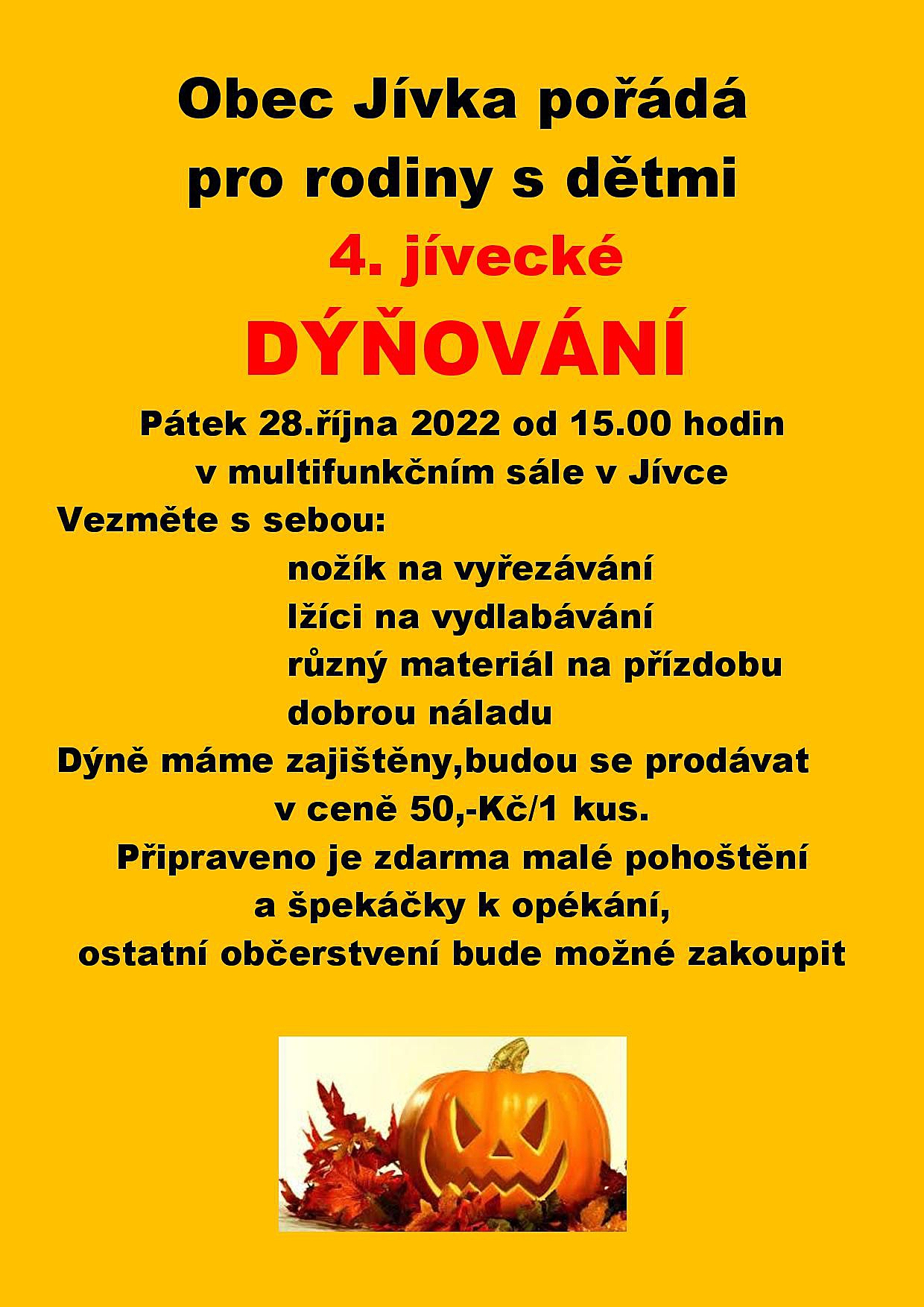 Čeká na vás zdobení a vyřezávání dýní, pro labužníky nebude chybět malé pohoštění a špekáčky k opékání.