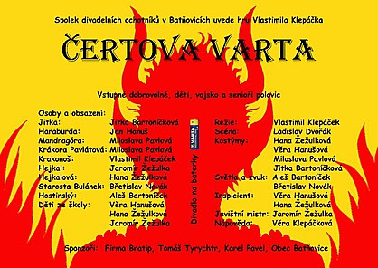Od 19:00 hodin pak přivítáme divadelníky ze sousedních Batňovic, kteří představí hru Čertova varta.