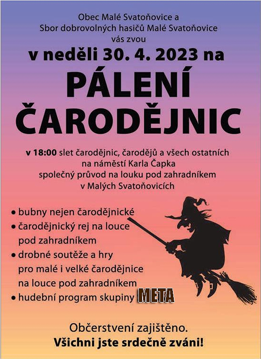 Obec Malé Svatoňovice a Sbor dobrovolných hasičů Malé Svatoňovice zvou na PÁLENÍ ČARODĚJNIC