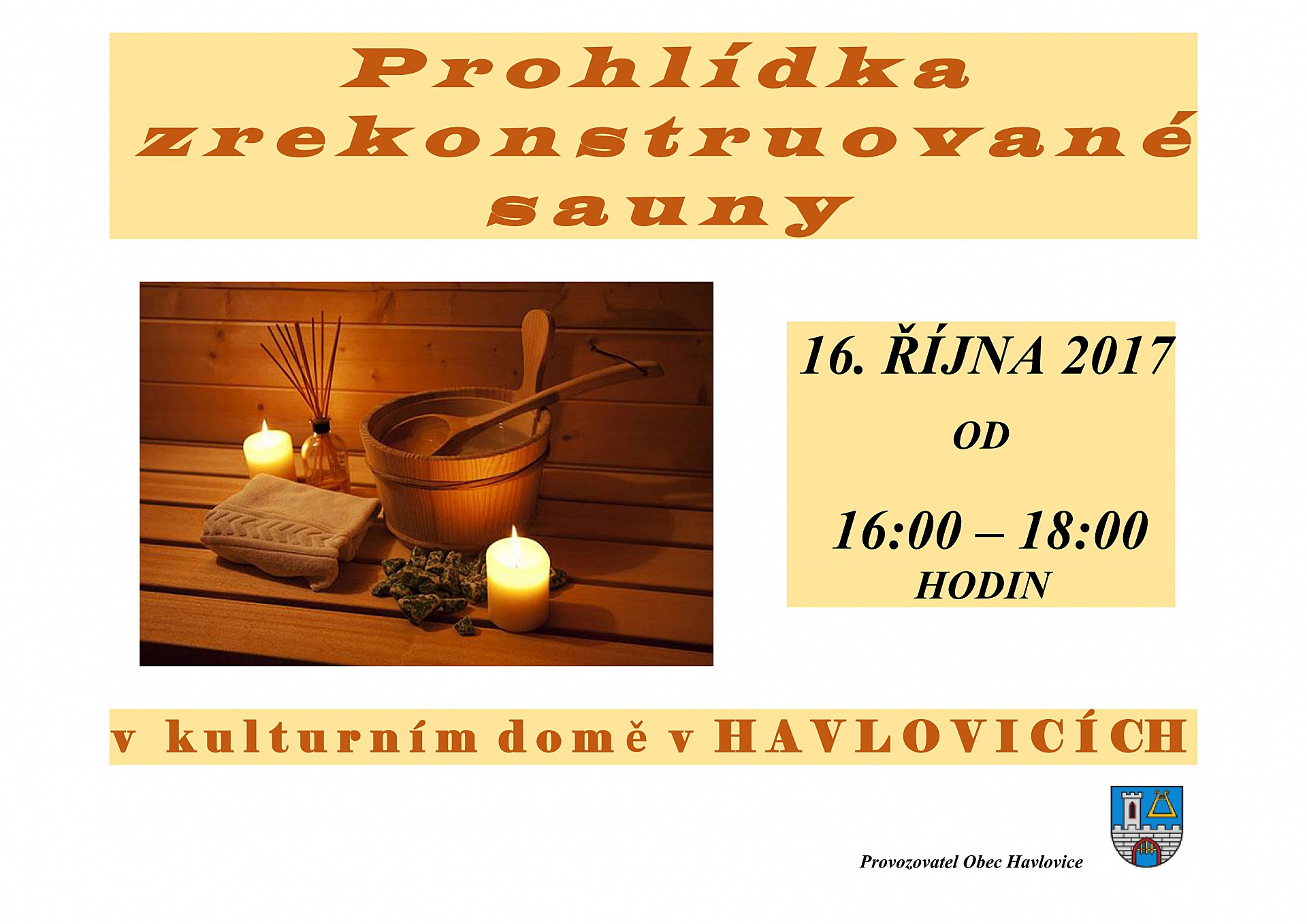 V pondělí 16. října od 16 do 18 hodin bude možnost si prohlédnout rekonstruovanou saunu v havlovickém kulturním domě.