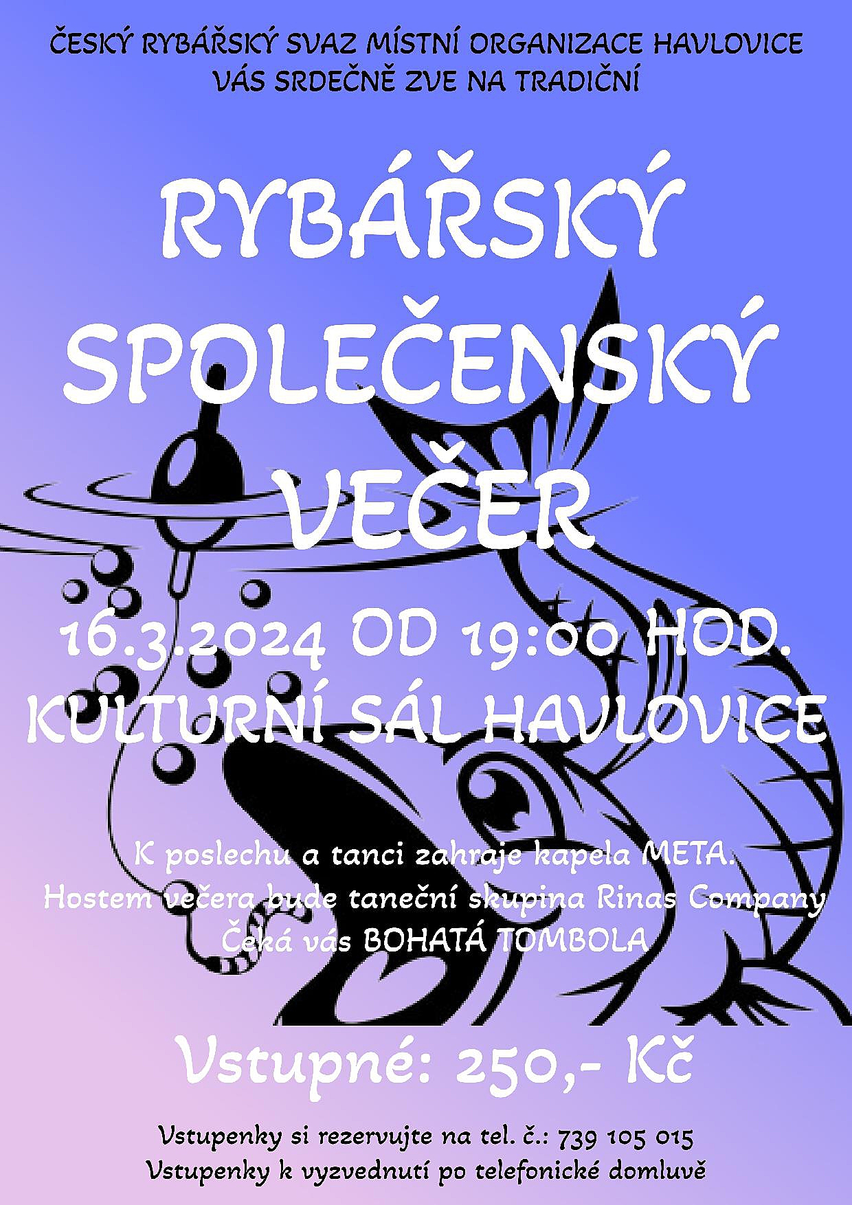 Rezervace lístků na tradiční rybářskou veselici na tel. čísle 739 105 015.
