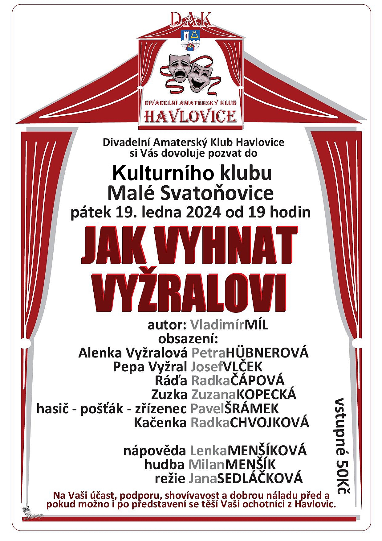 Zveme vás na představení Divadelního amaterského klubu Havlovice JAK VYHNAT VYŽRALOVI