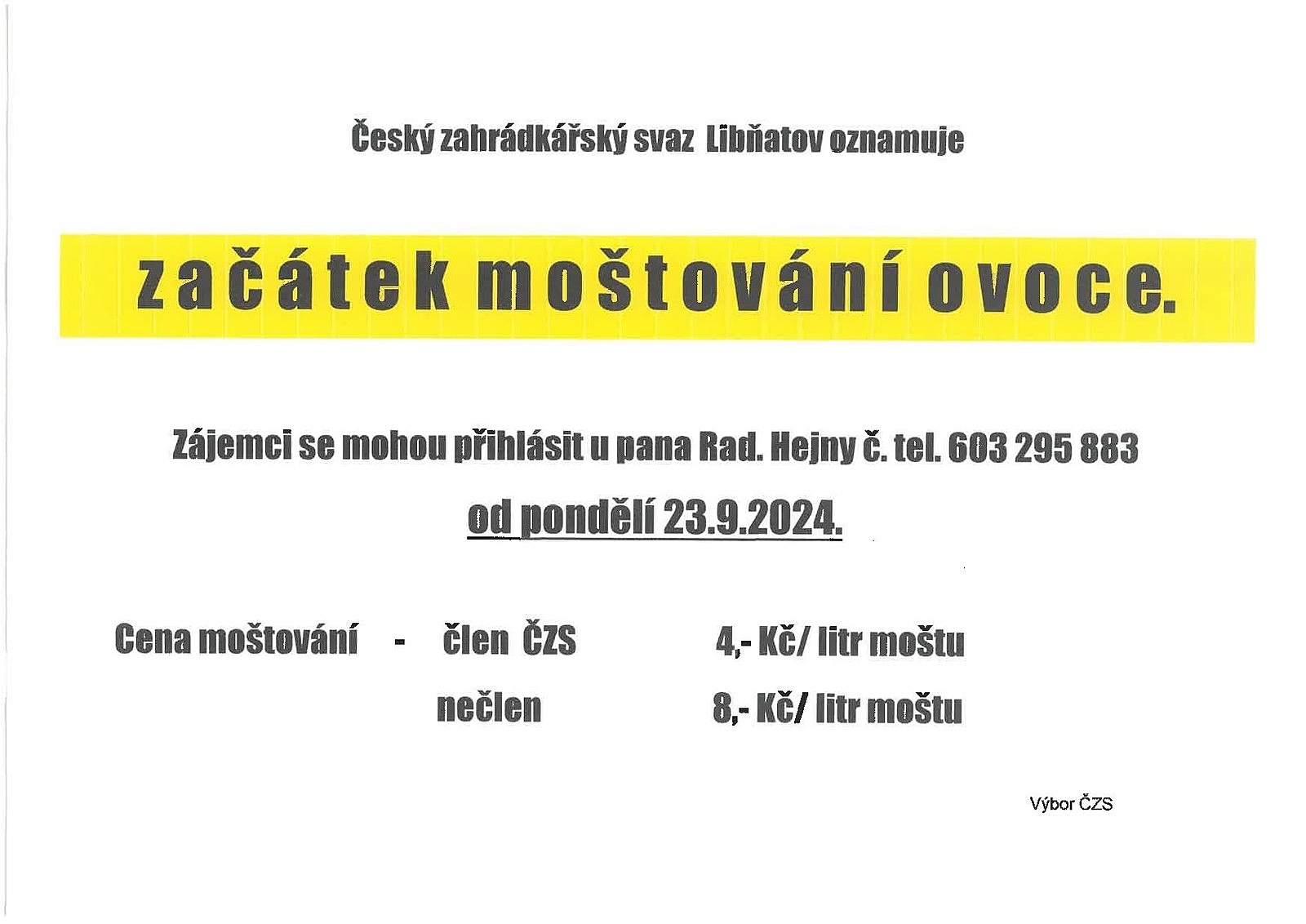 Moštárna v Libňatově čeká na vaši letošní úrodu.