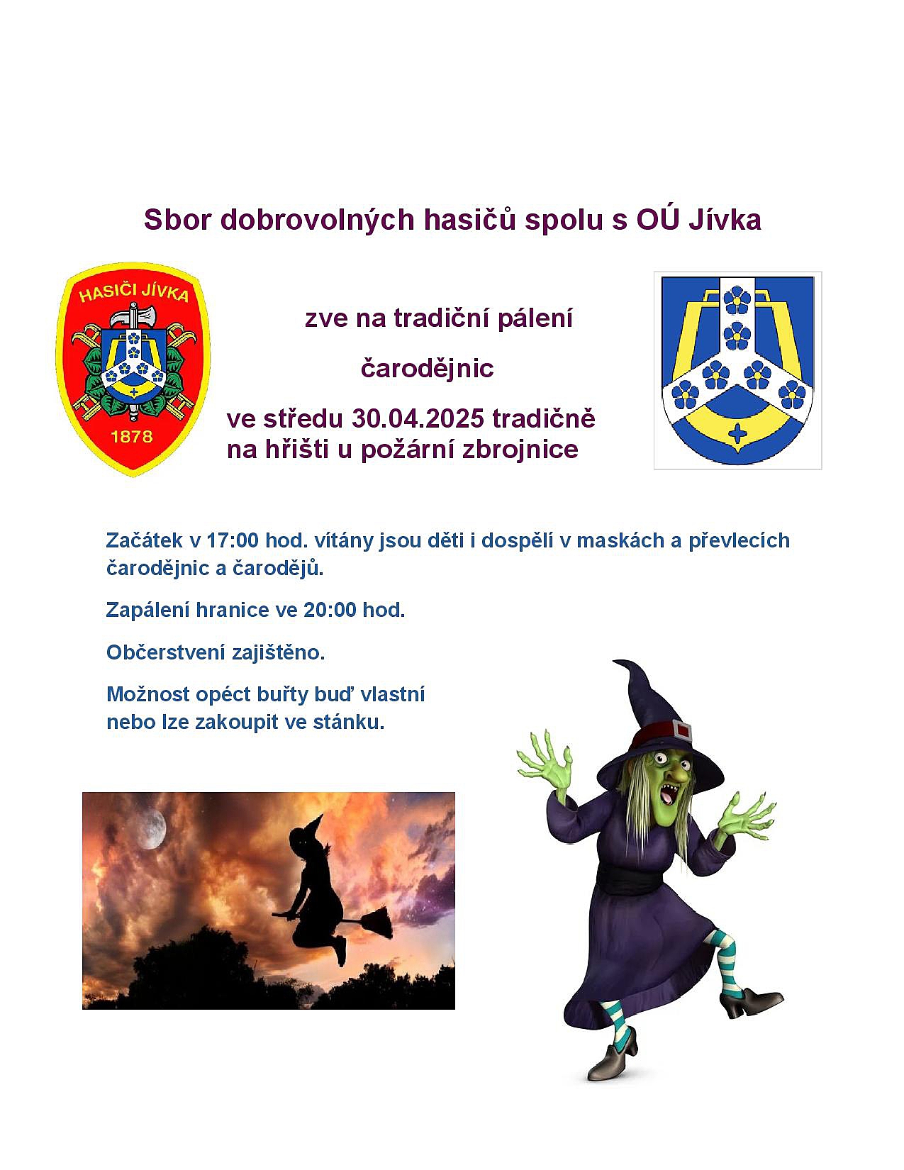Srdečně zveme všechny na tradiční PÁLENÍ ČARODEJNIC do Jívky