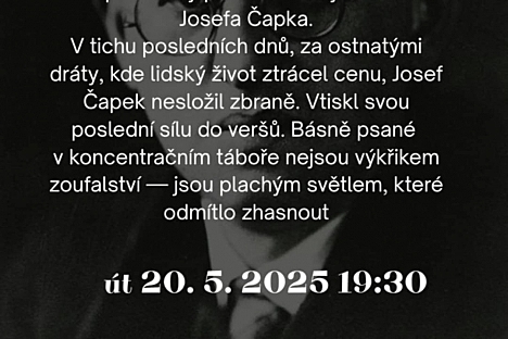 Na chvilku zvolni svůj běh. Tak se jmenuje komponovaný pořad k 80. výročí úmrtí Josefa Čapka, který bude v úterý 20. května hostit pražská kavárna Slavia.