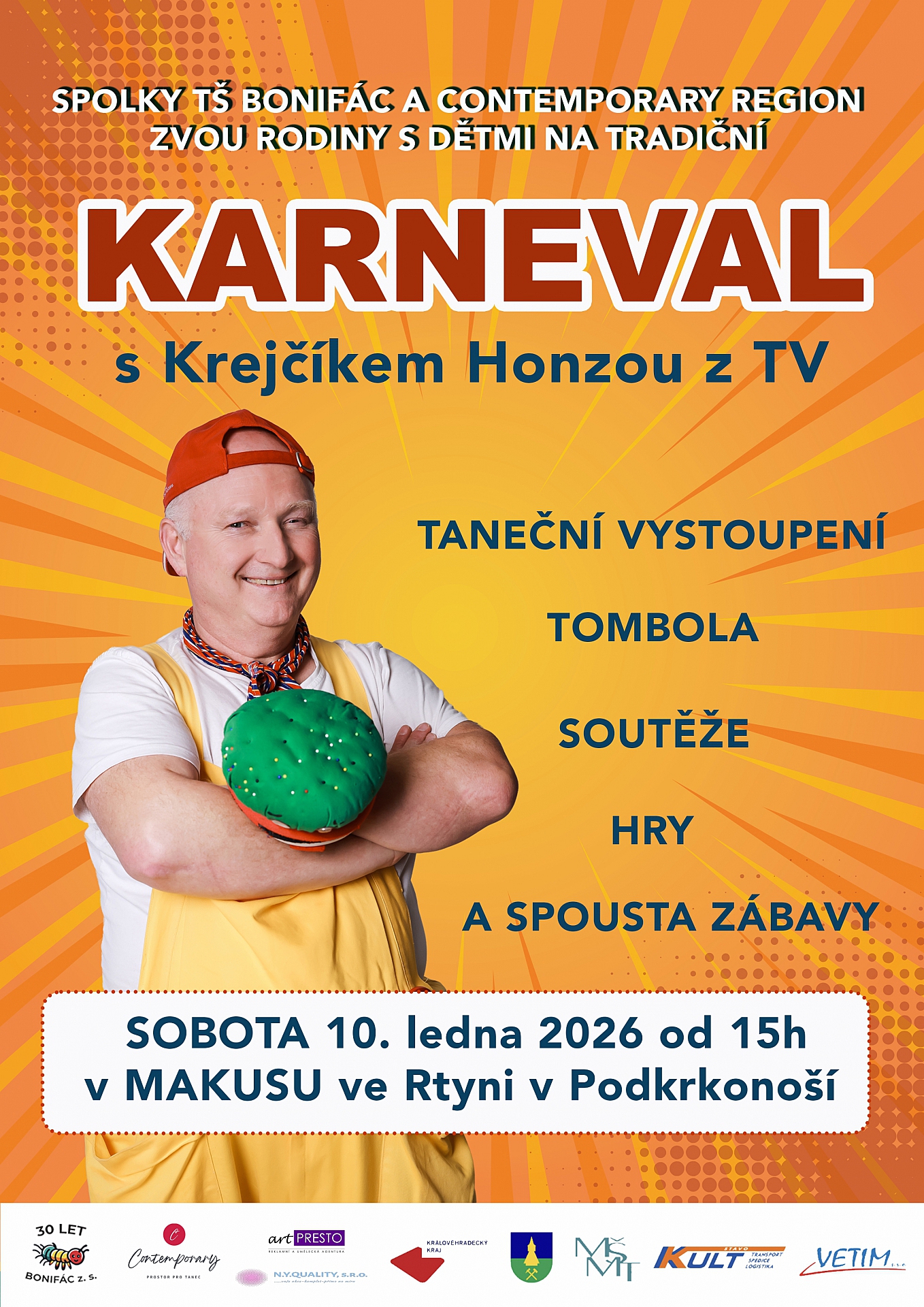 Rtyňské spolky TŠ Bonifác a Contemporary Region vás zvou na tradiční karneval pro děti.