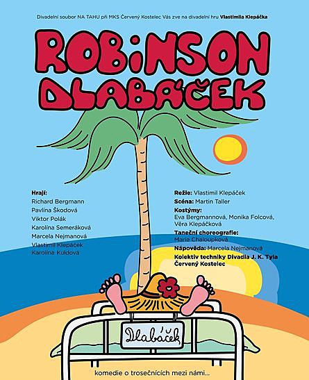 Divadelní představení Robinson Dlabáček sehrají v sále K-Klubu ochotníci z Červeného Kostelce.