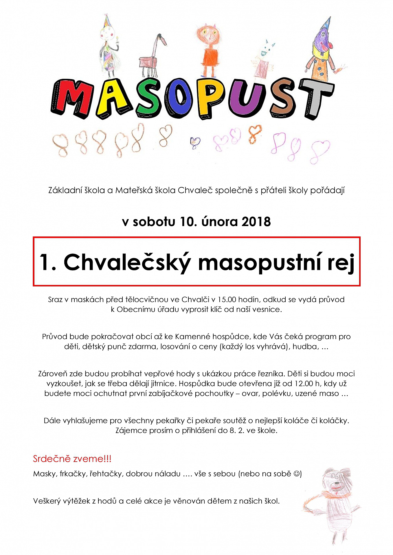 ZŠ a MŠ Chvaleč vás srdečně zvou na masopustní rej