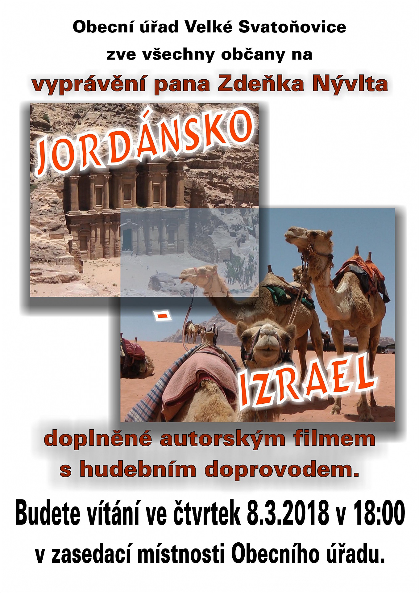 Cestopisná přednáška s projekcí na téma Jordánsko - Izrael. Přednáší pan Nývlt.