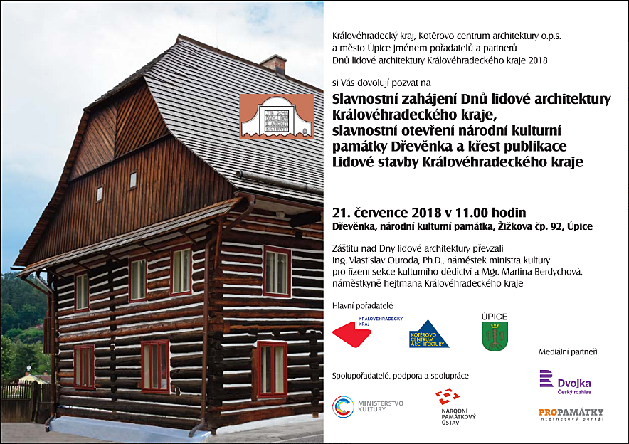 Město Úpice, NPÚ, Královéhradecký kraj srdečně zvou na slavnostní otevření Národní kulturní památky Dřevěnka.