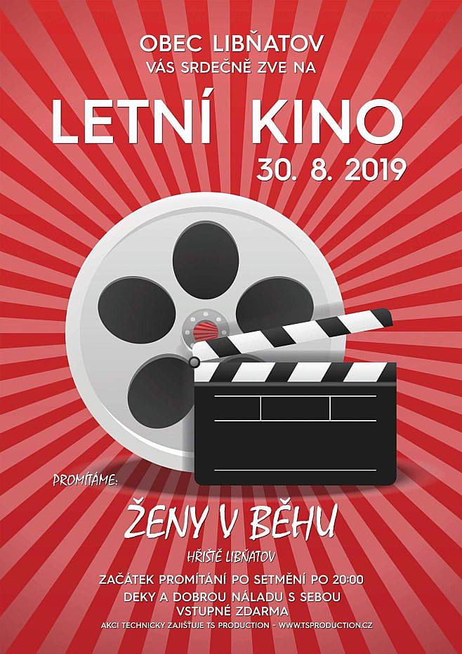 Obec Libňatov vás srdečně zve na letní kino, které 30. 8. 2019 promítá film Ženy v běhu. Začátek promítání po setmění po 20:00 hodině. Deky a dobrou náladu s sebou. Vstupné zdarma.